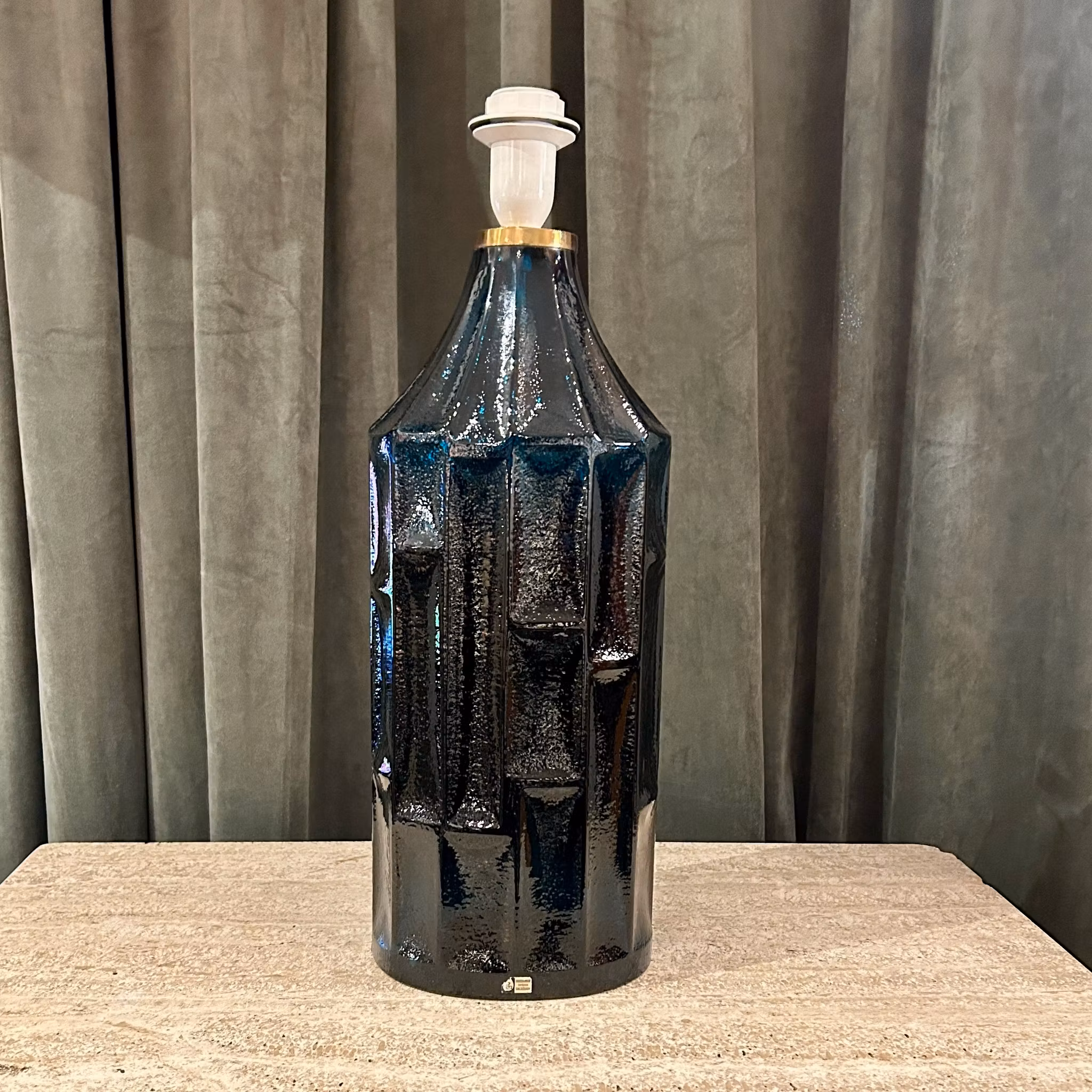 Bordslampa i blått glas. Christer Sjögren Lindhammarsglasbruk. Höjd till lampfäste 50 Höjd med skärmen 70