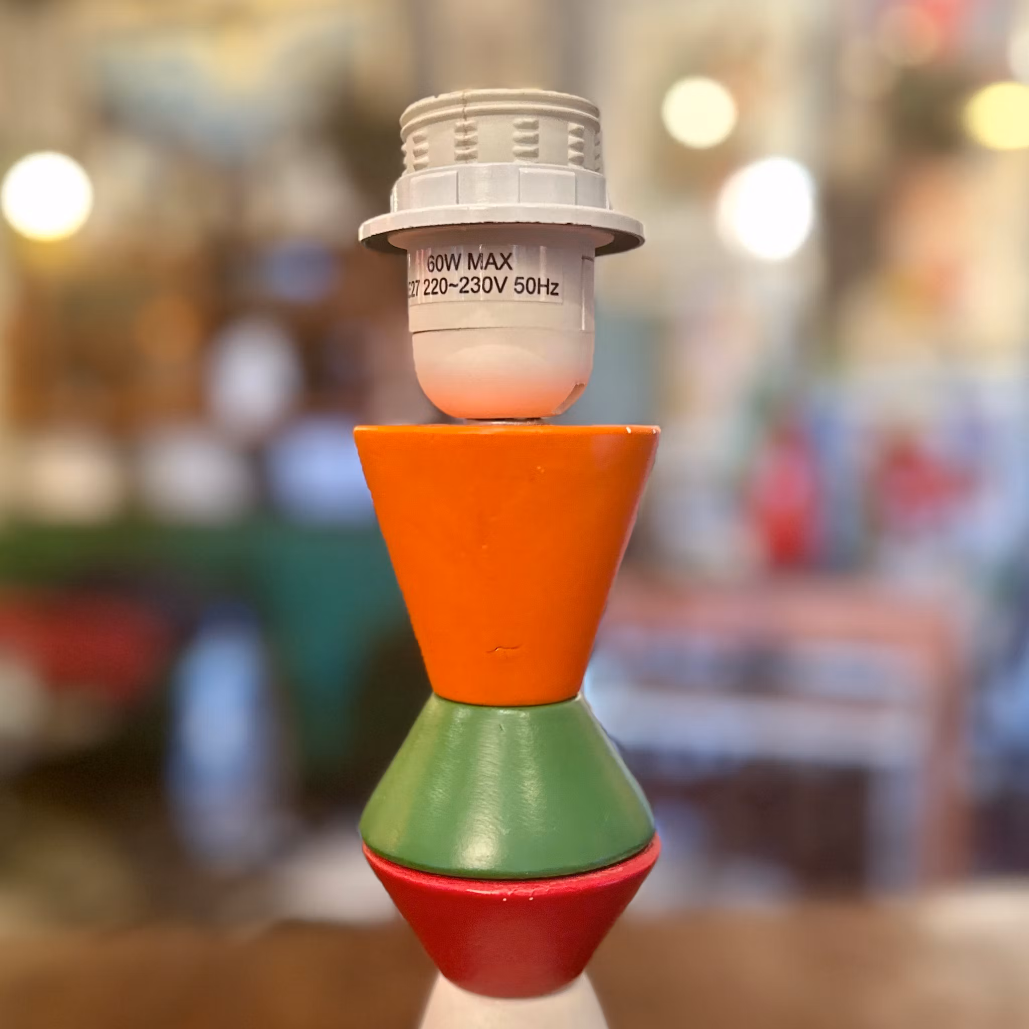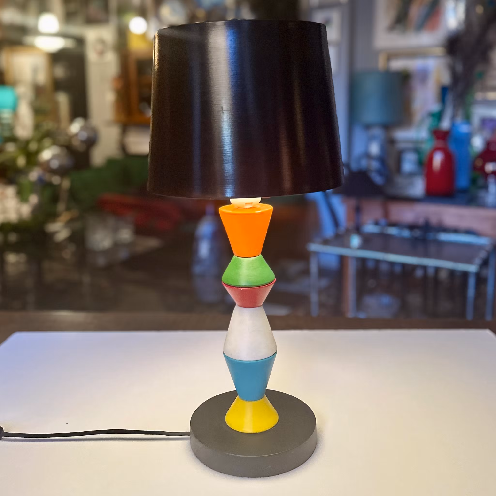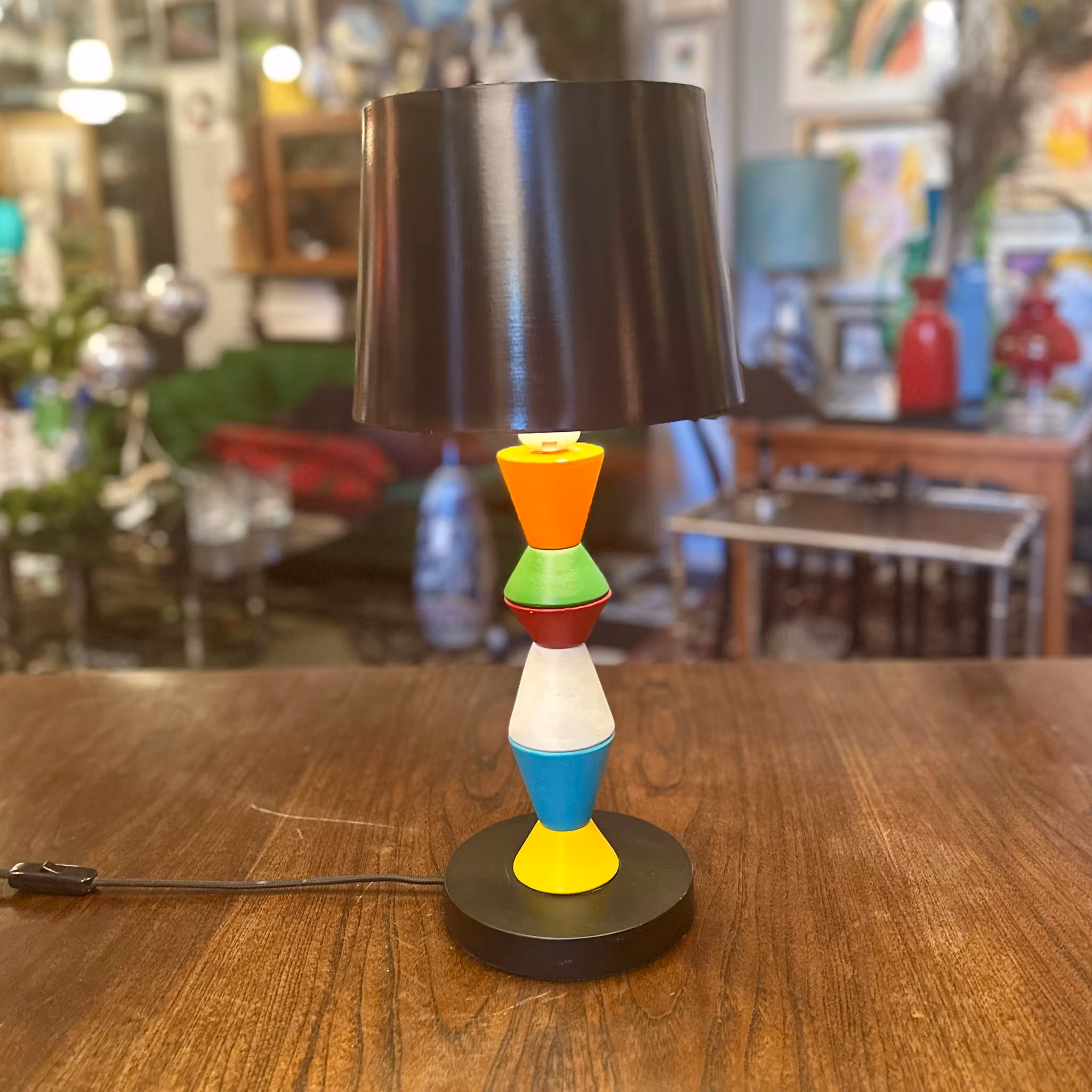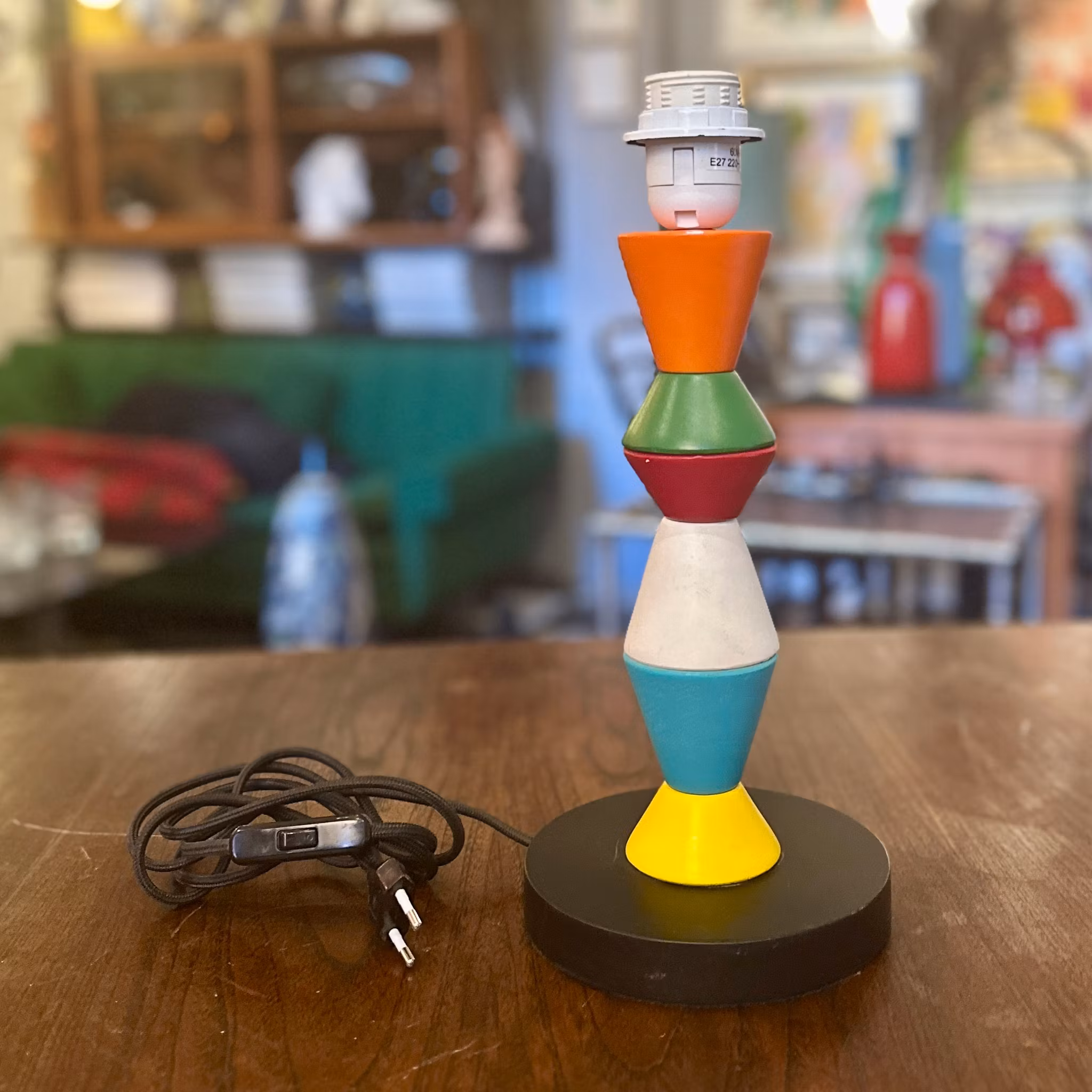 Lekfull bordslampa med färgglada detaljer, inspirerad av byggklossar. Höjd: 35 cm. Ny el. Skärm ingår ej.