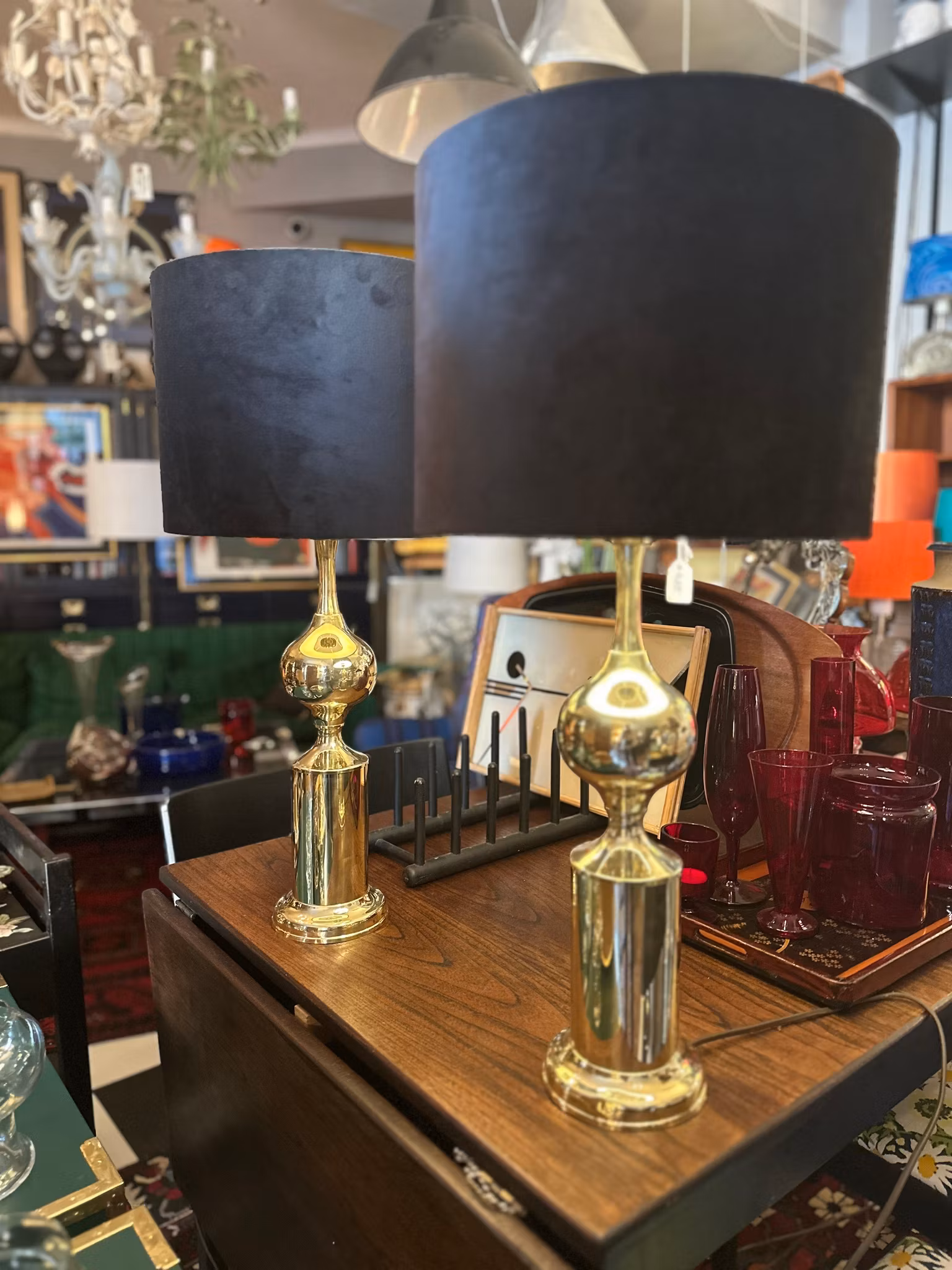 Ett par eleganta bordslampor i mässing med rundad fot. Klassisk form och fin patina.