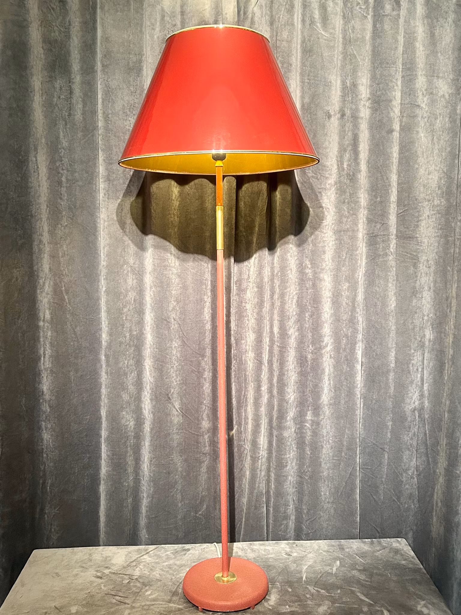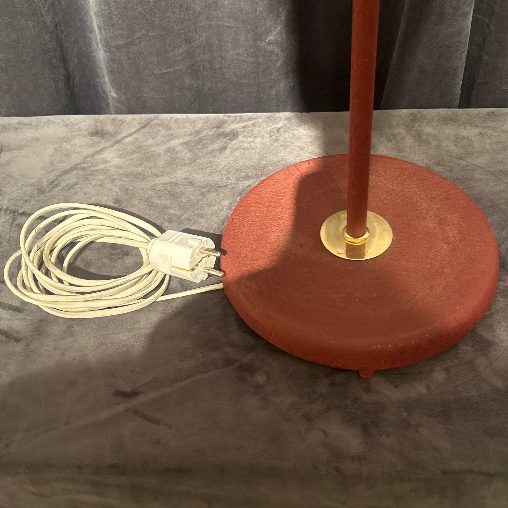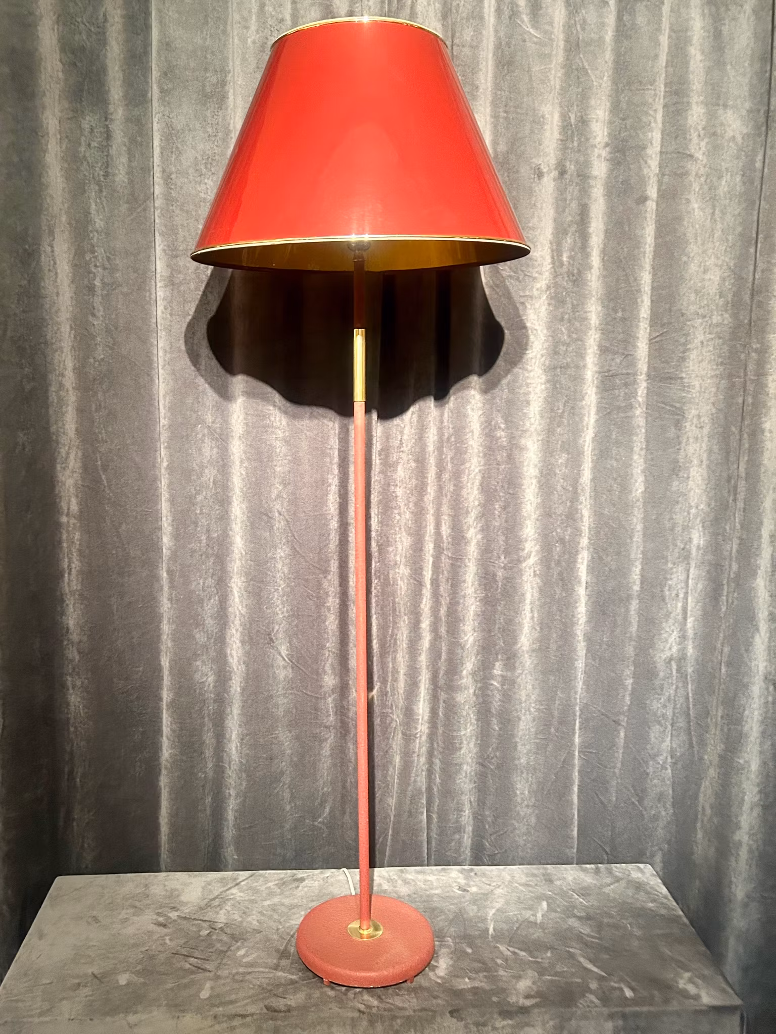 Golvlampa i metall, modell 7075, designad och tillverkad av FLB,Pulverlackad i vinrött, Falkenbergs Belysning, Sverige. 1900-talets andra hälft. Priset utan skärm.