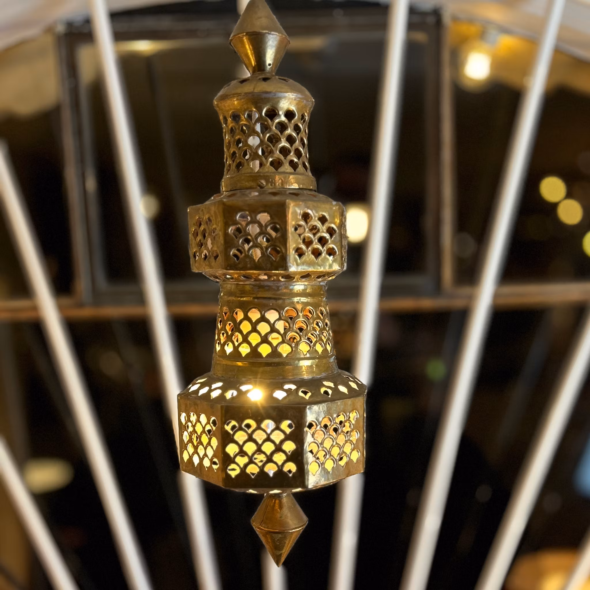 Vacker orientalisk taklykta i mässing. Dekorativ och elegant med en höjd på 45 cm.