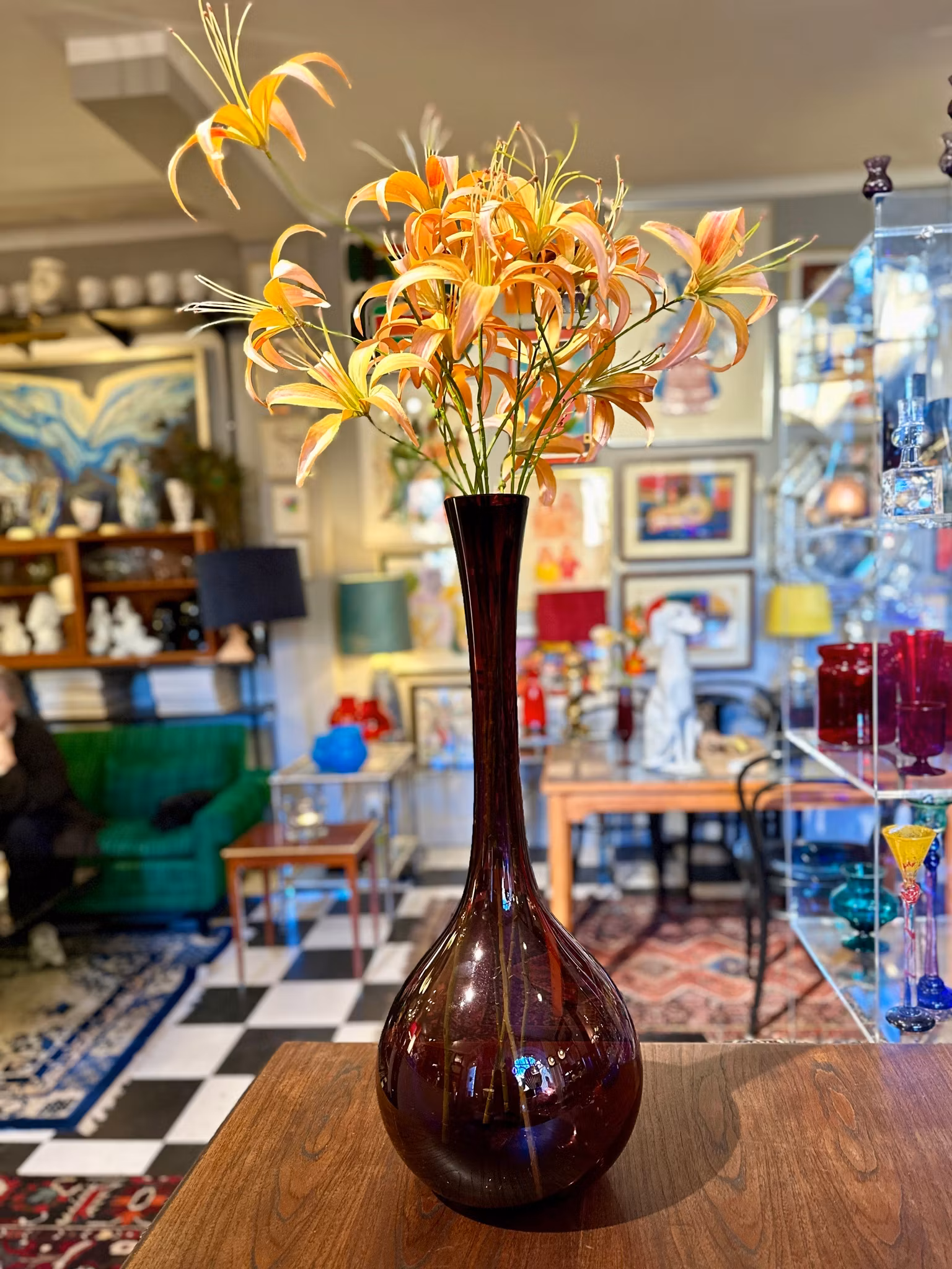 S.k. bulbvas i lila glas, designad av Arthur Percy för Gullaskruf. Höjd: 67 cm. Gott skick.