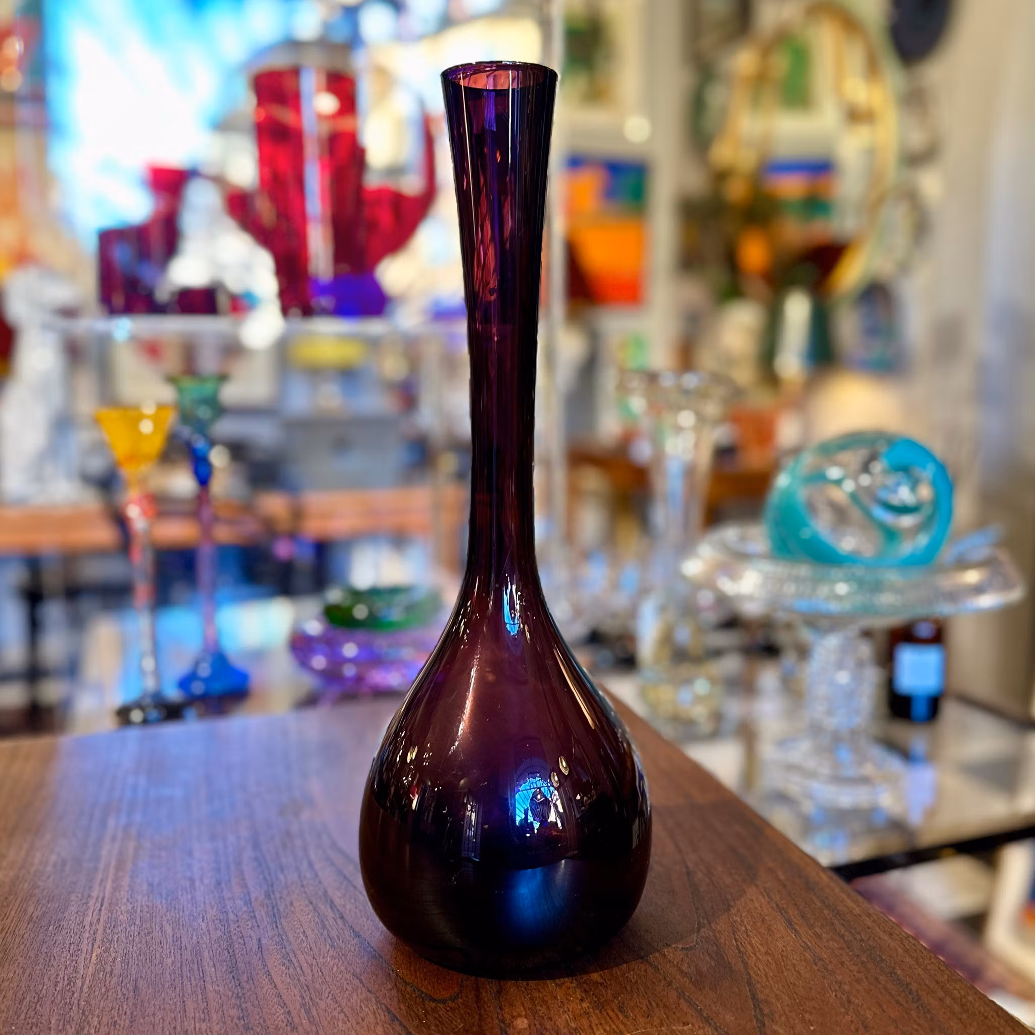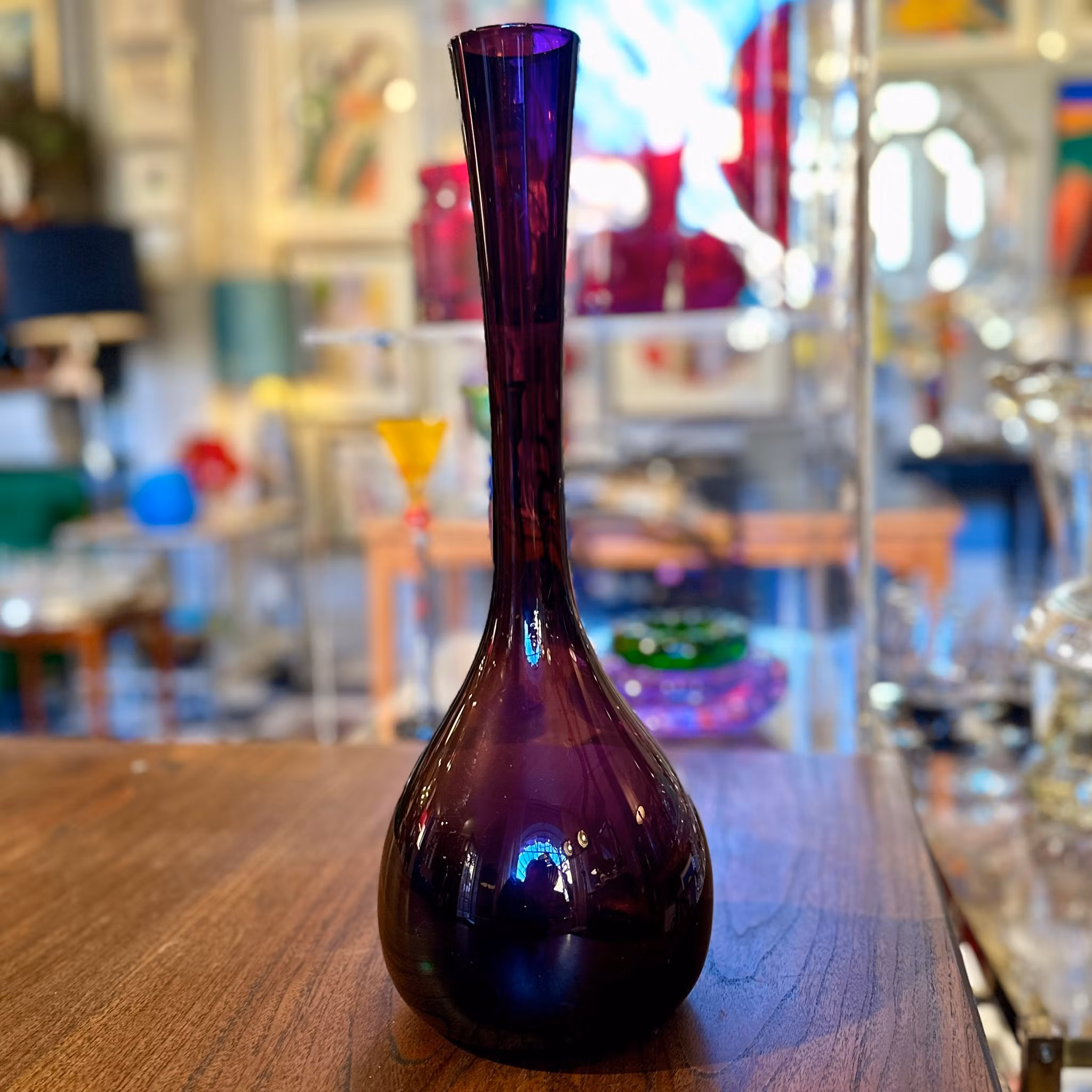 Stor bulbvas i lila glas, designad av Arthur Percy för Gullaskruf. Höjd: 39 cm. Gott skick.