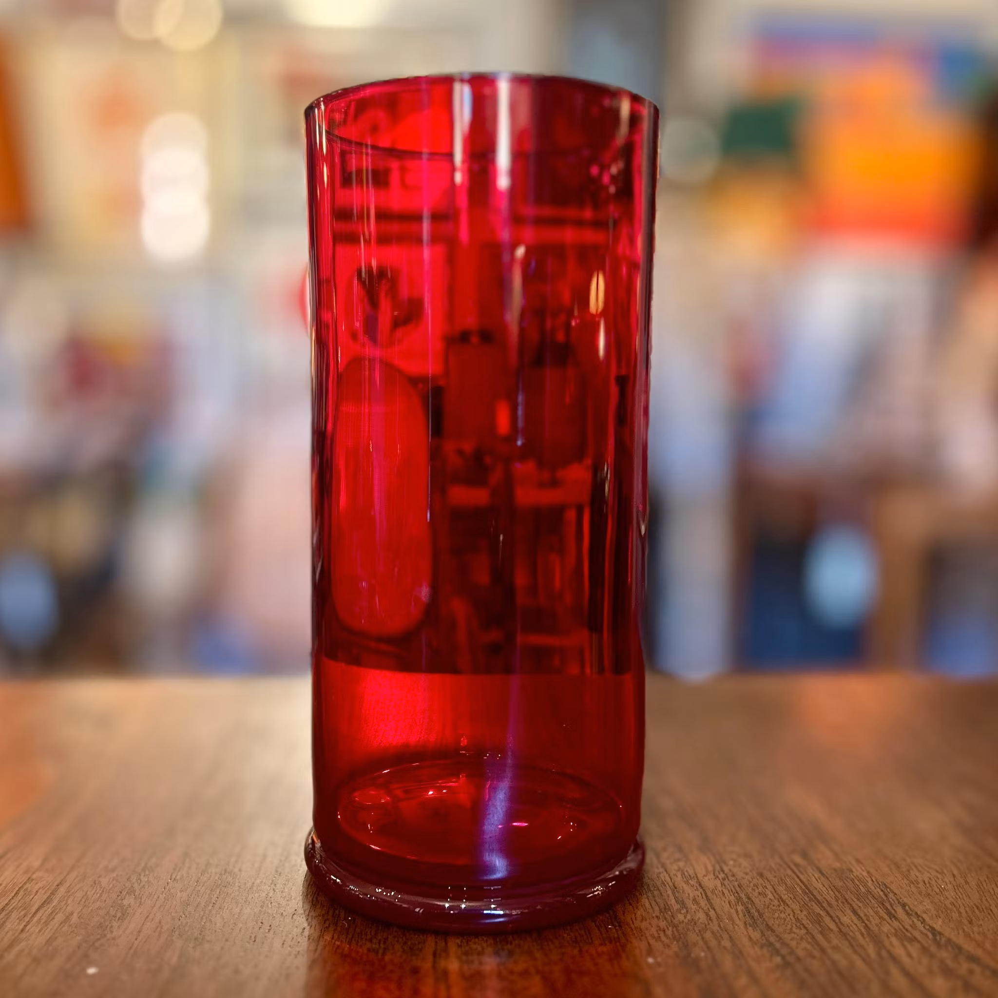 Stilren röd cylindervas från Kosta. Höjd: 21 cm, diameter: 9 cm. Bra skick.