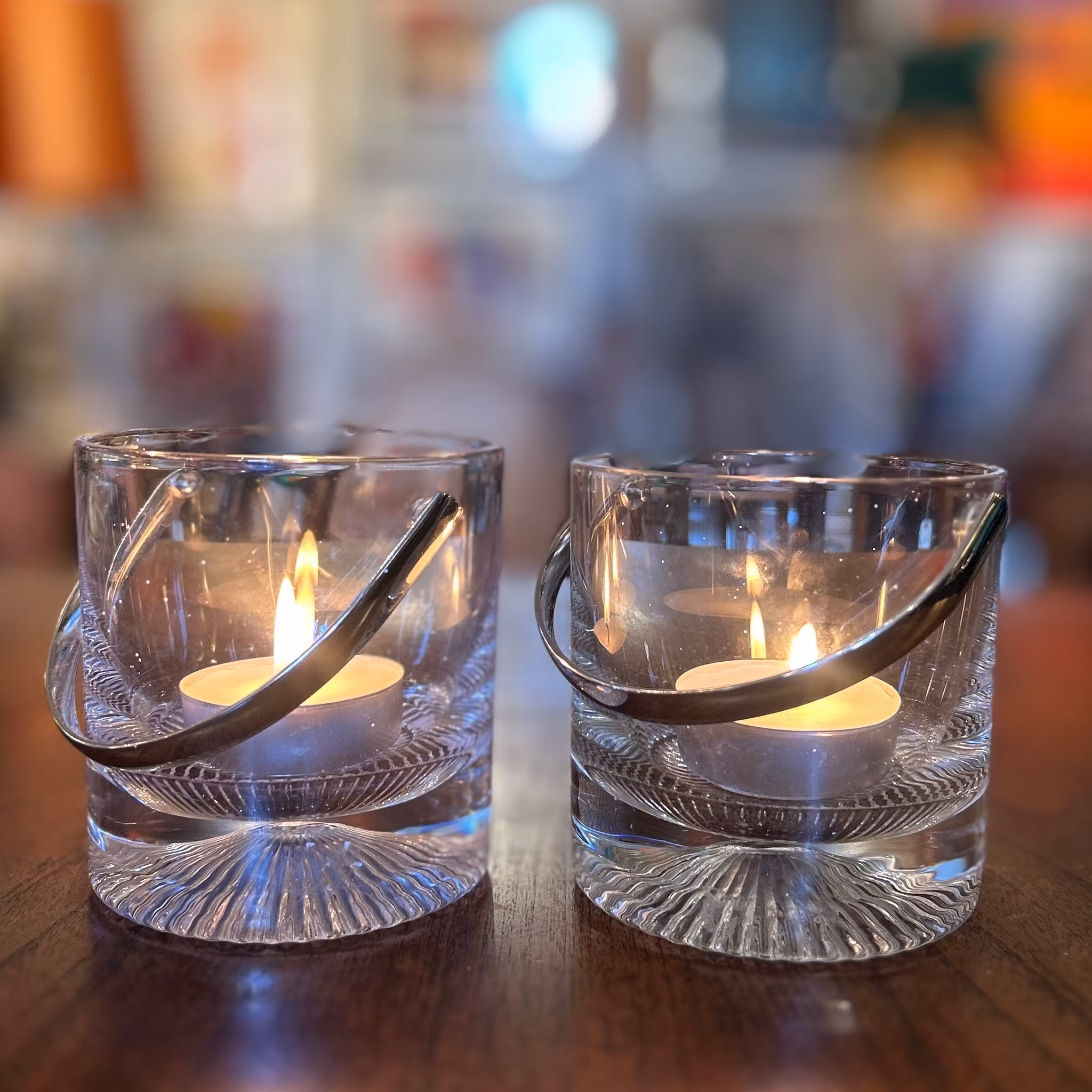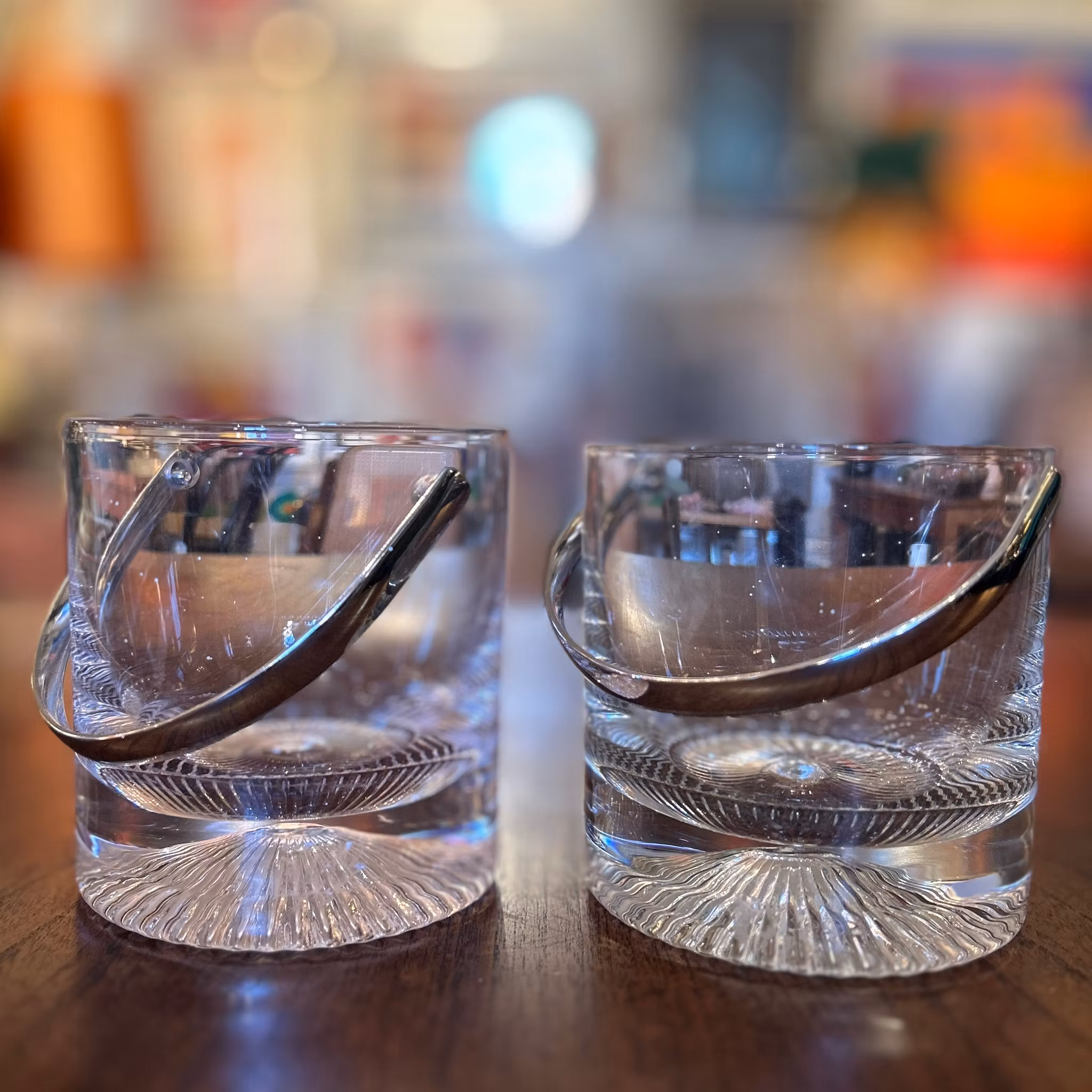 Två ishinkar/ljuslyktor med bambuhandtag. Höjd: 12 cm. Mycket bra skick.