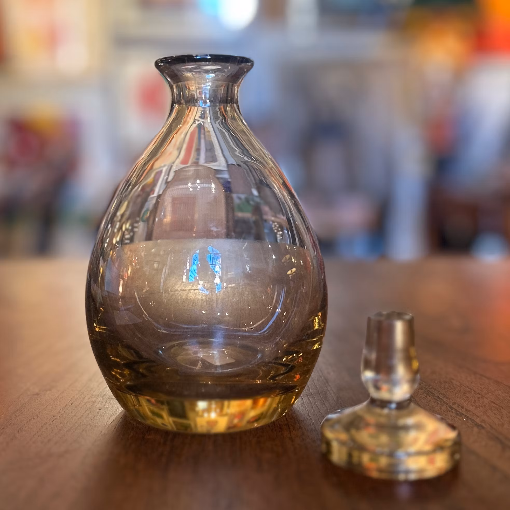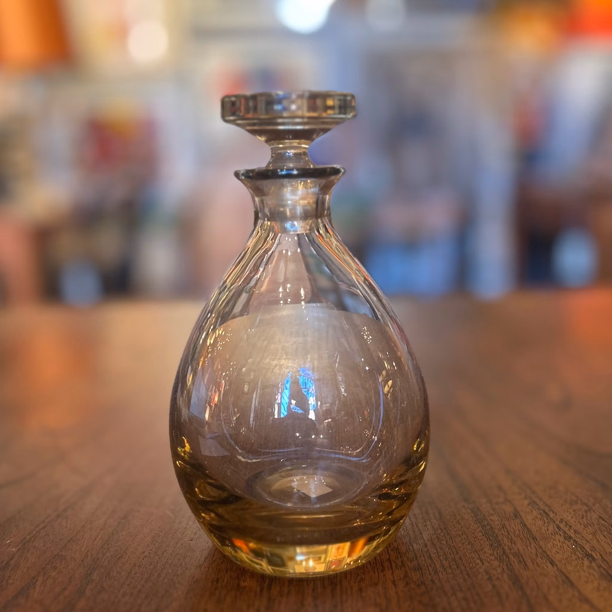 Mindre karaff i ljusgult glas. Höjd: 19 cm. Gott skick.