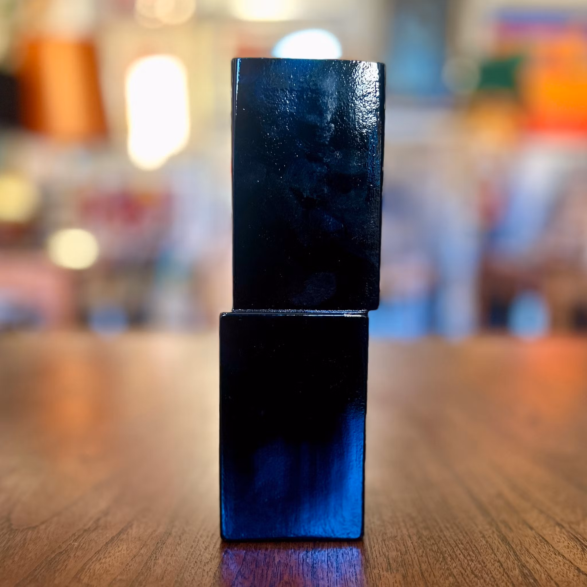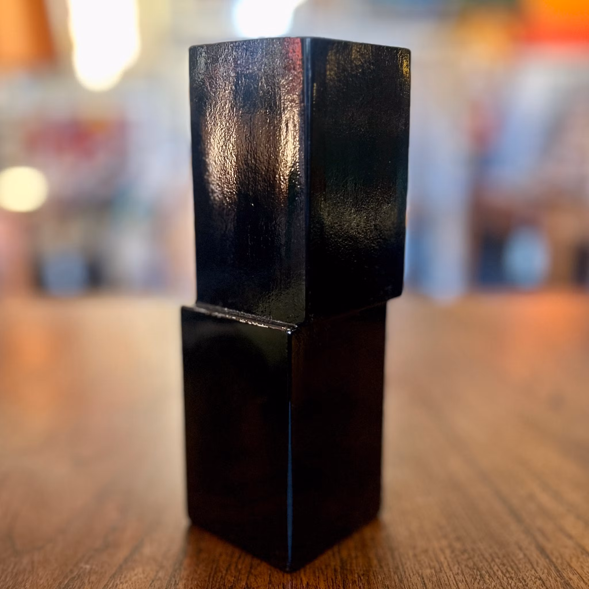 Modern svart glasvas i kubistisk design. 22 cm hög.