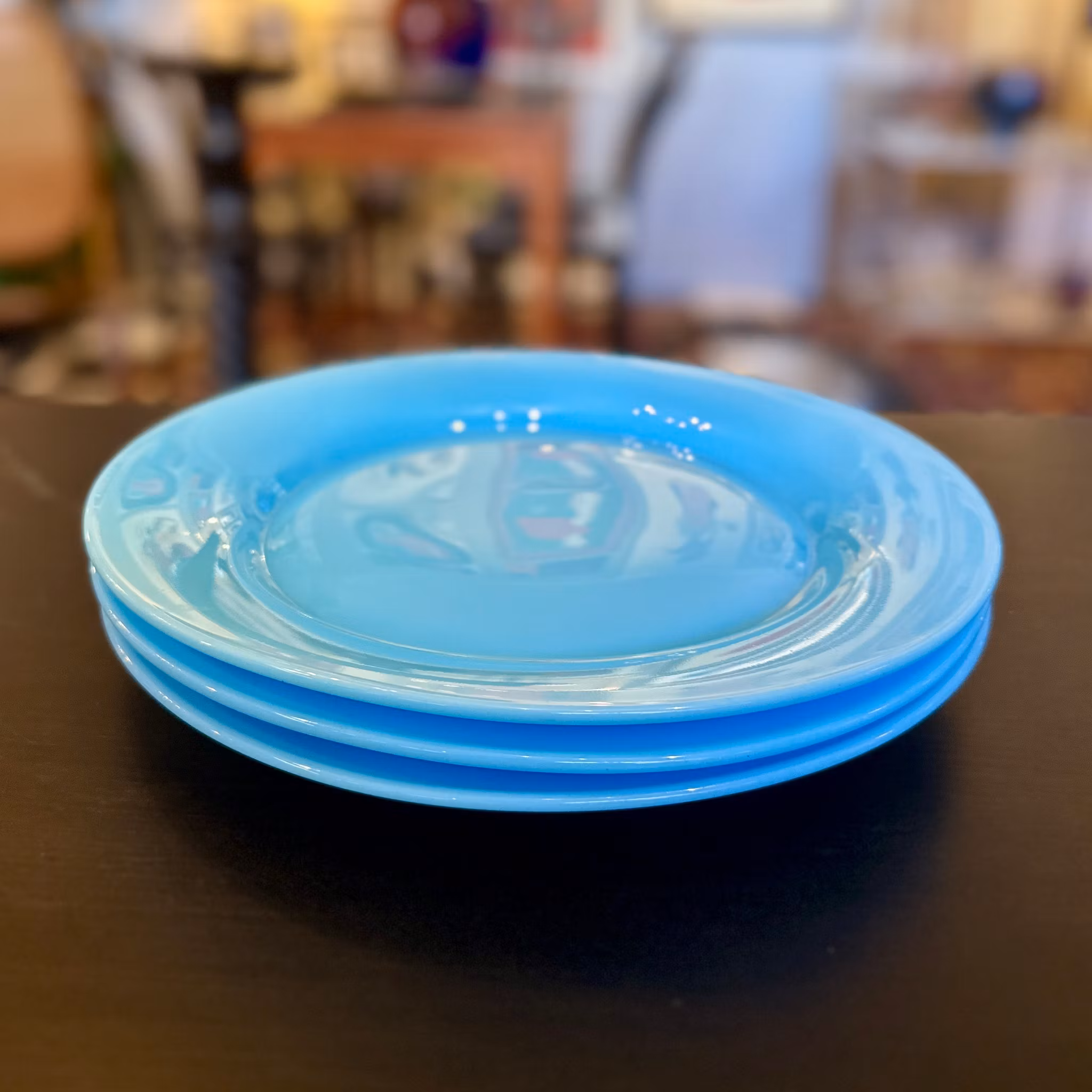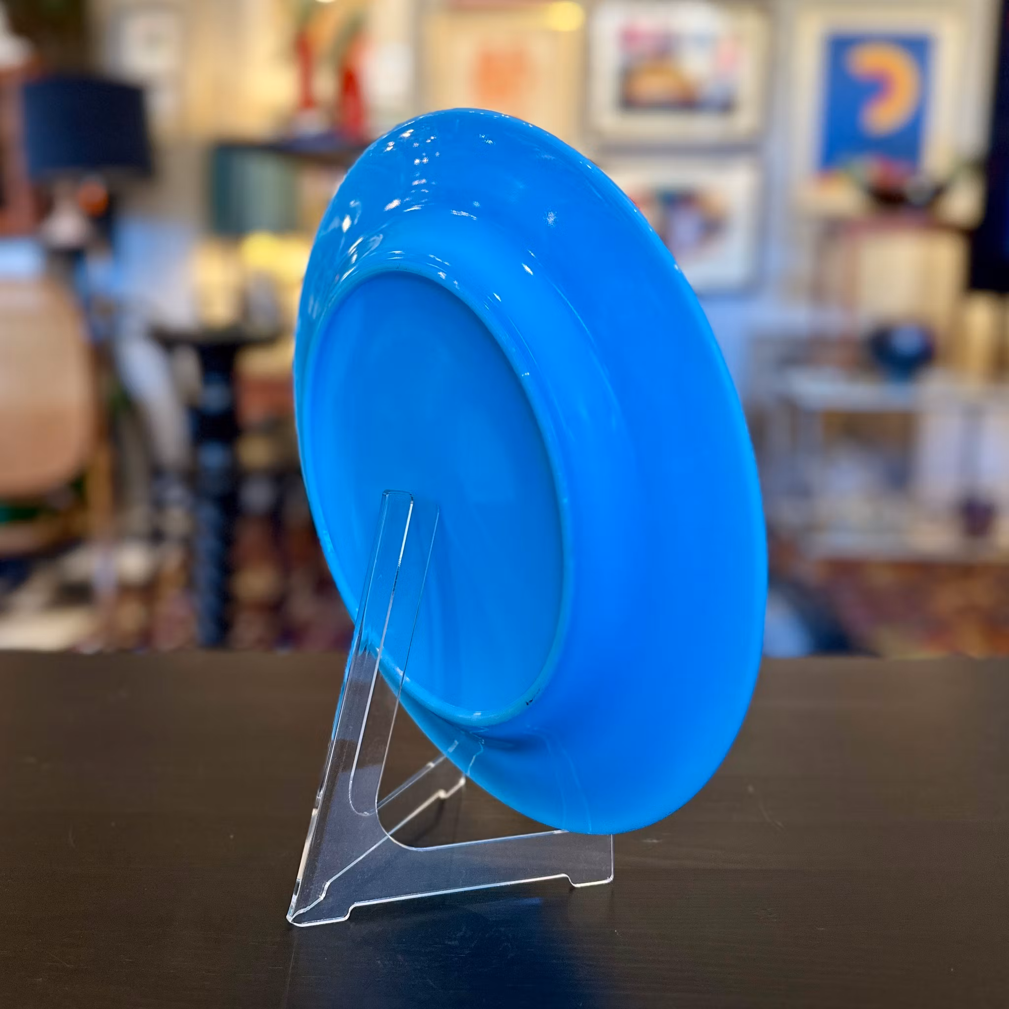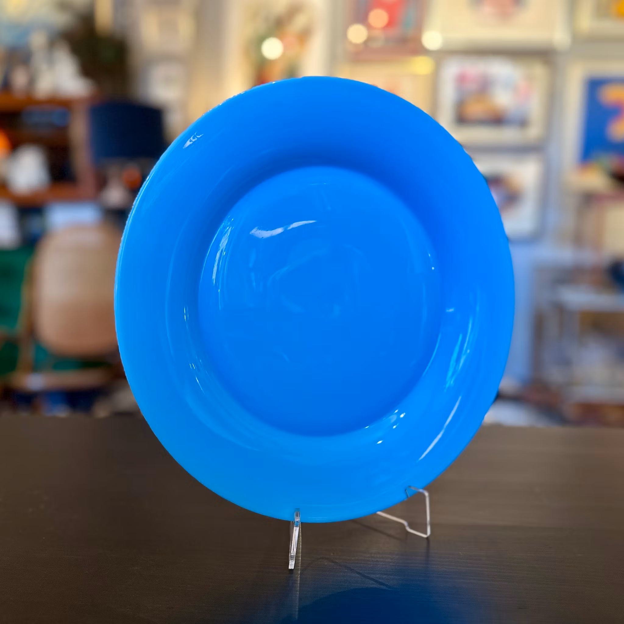 Vackra turkosa tallrikar i glas, stilrena och tidlösa för dukningen. Dia 30 cm