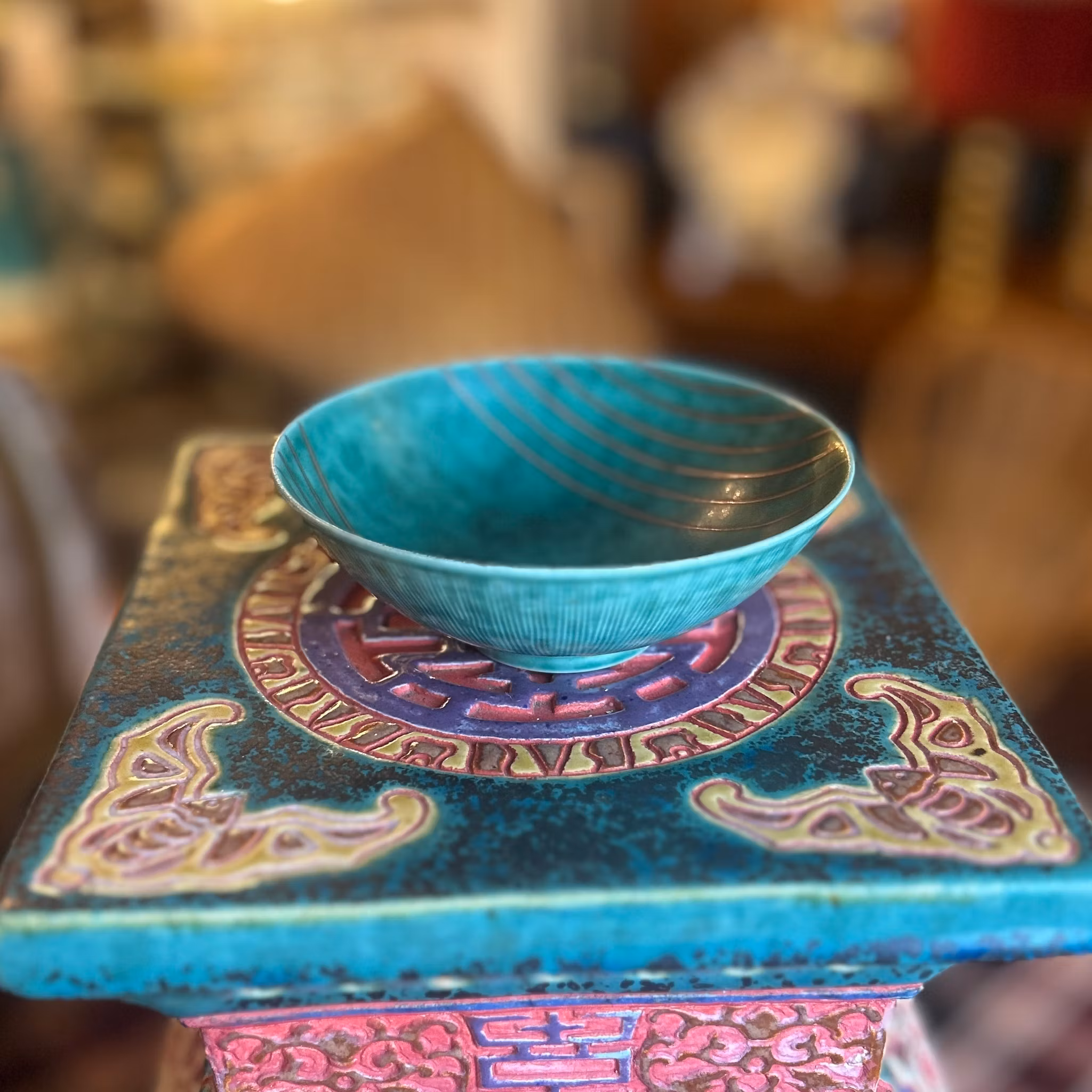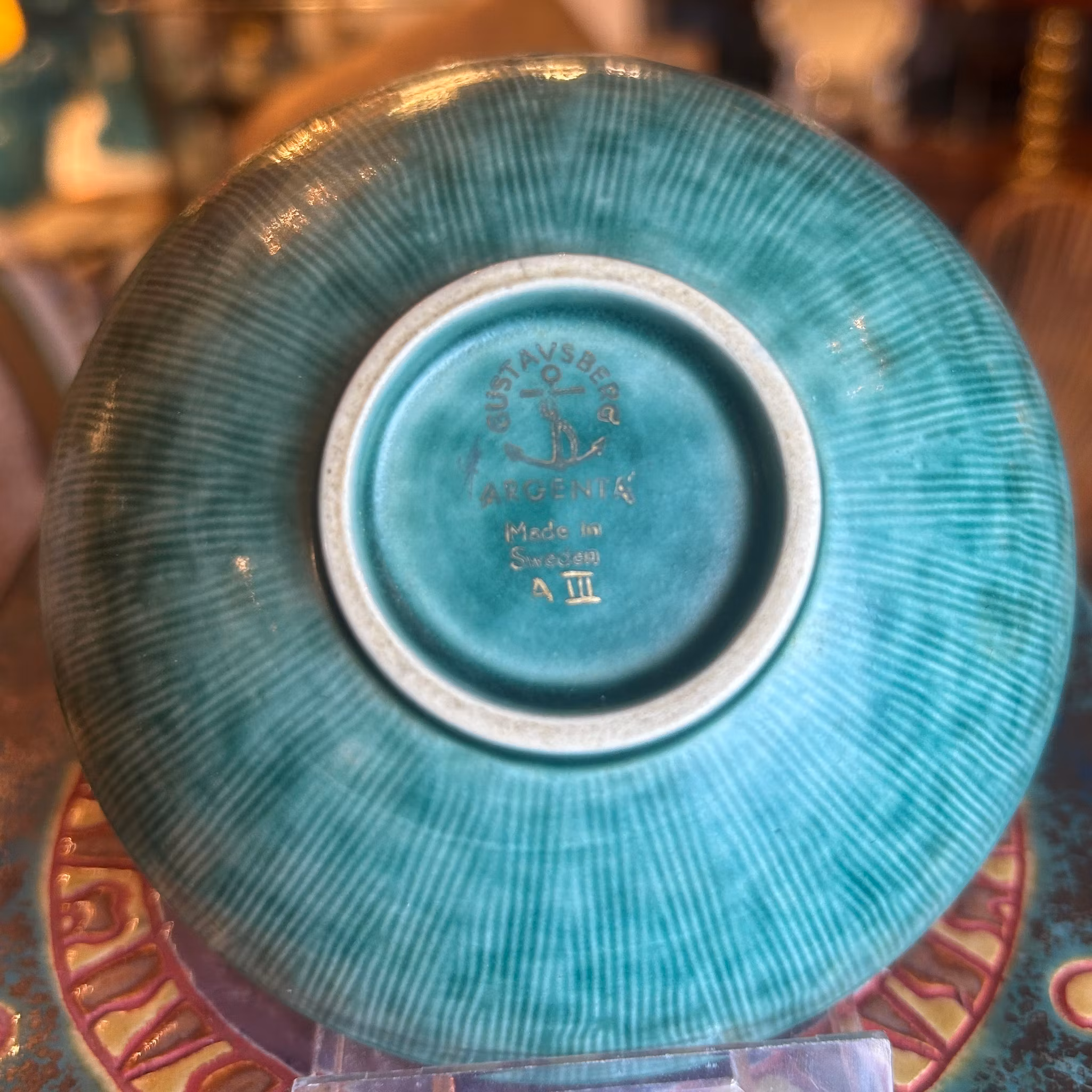 Argenta-skål i Gustavsberg-stengods, designade av Wilhelm Kåge. En tidlös kombination av form och färg.