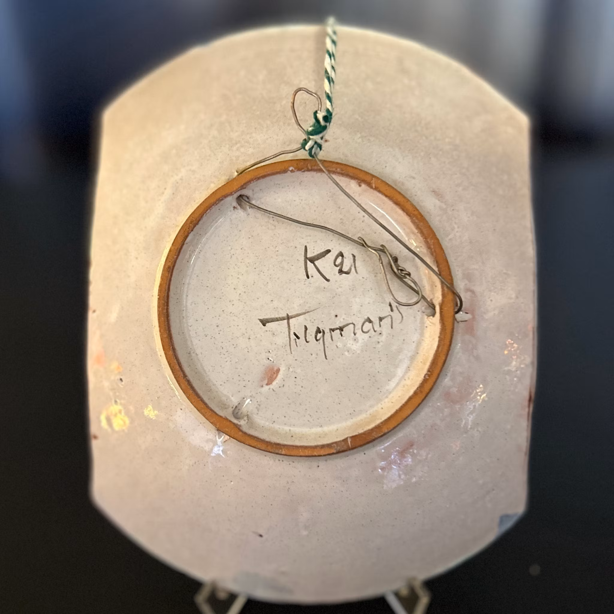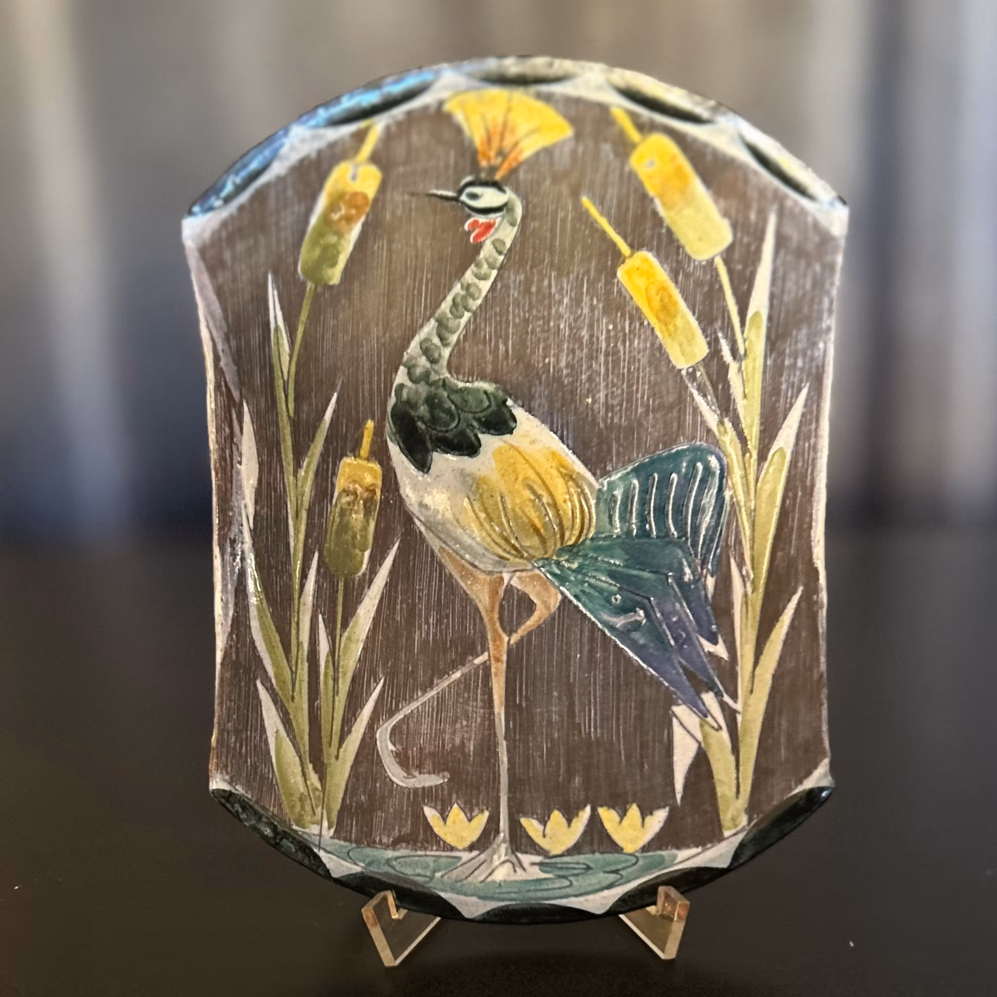 Skålfat med strutsmotiv, Tilgmans keramik. Höjd: 22 cm. Bra skick.