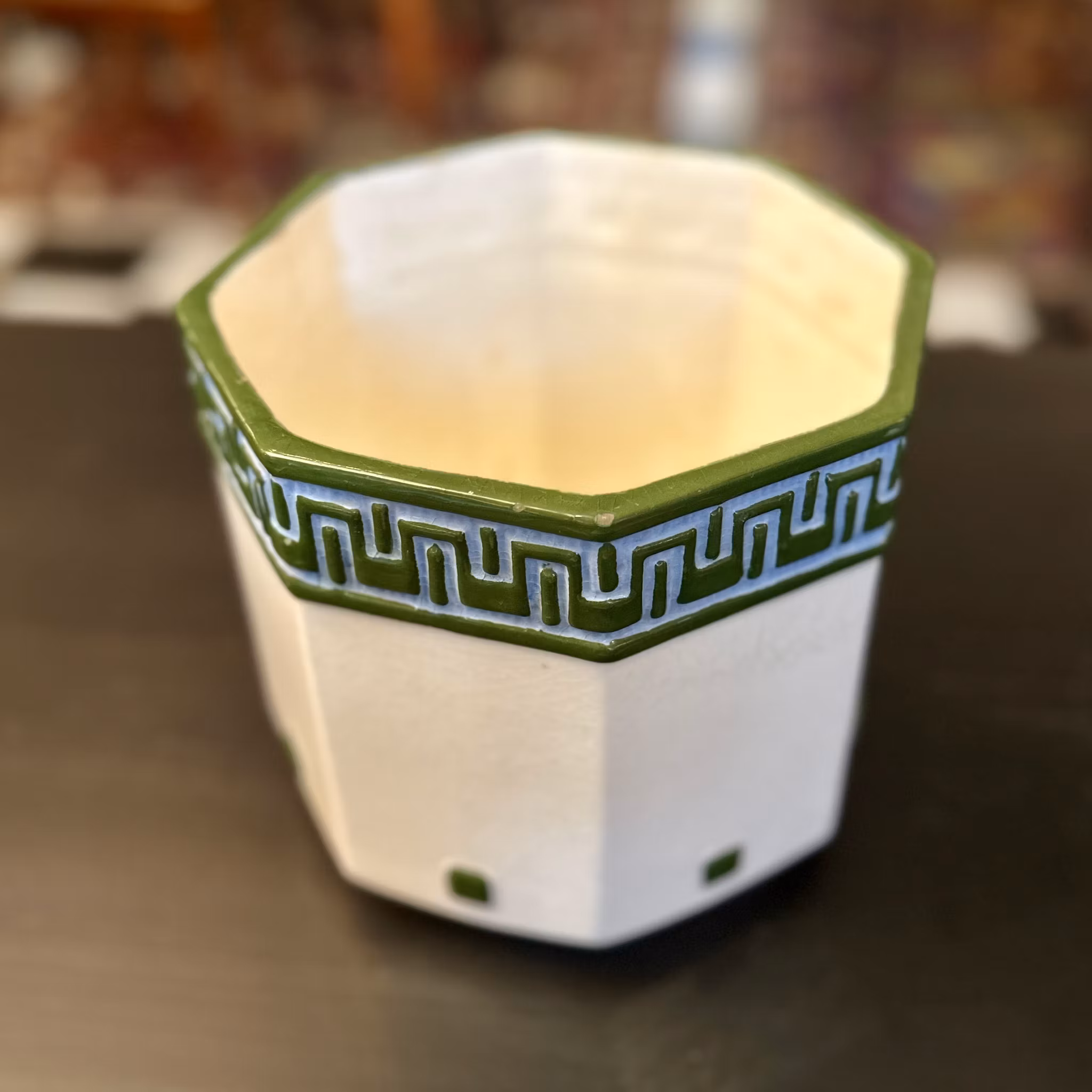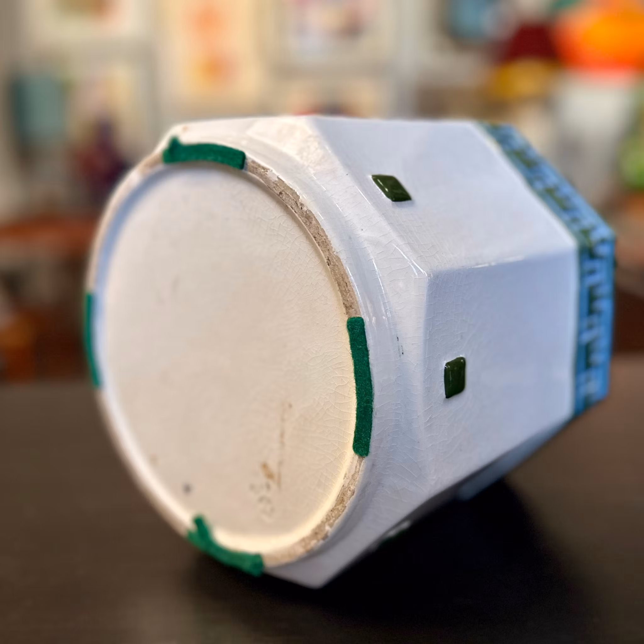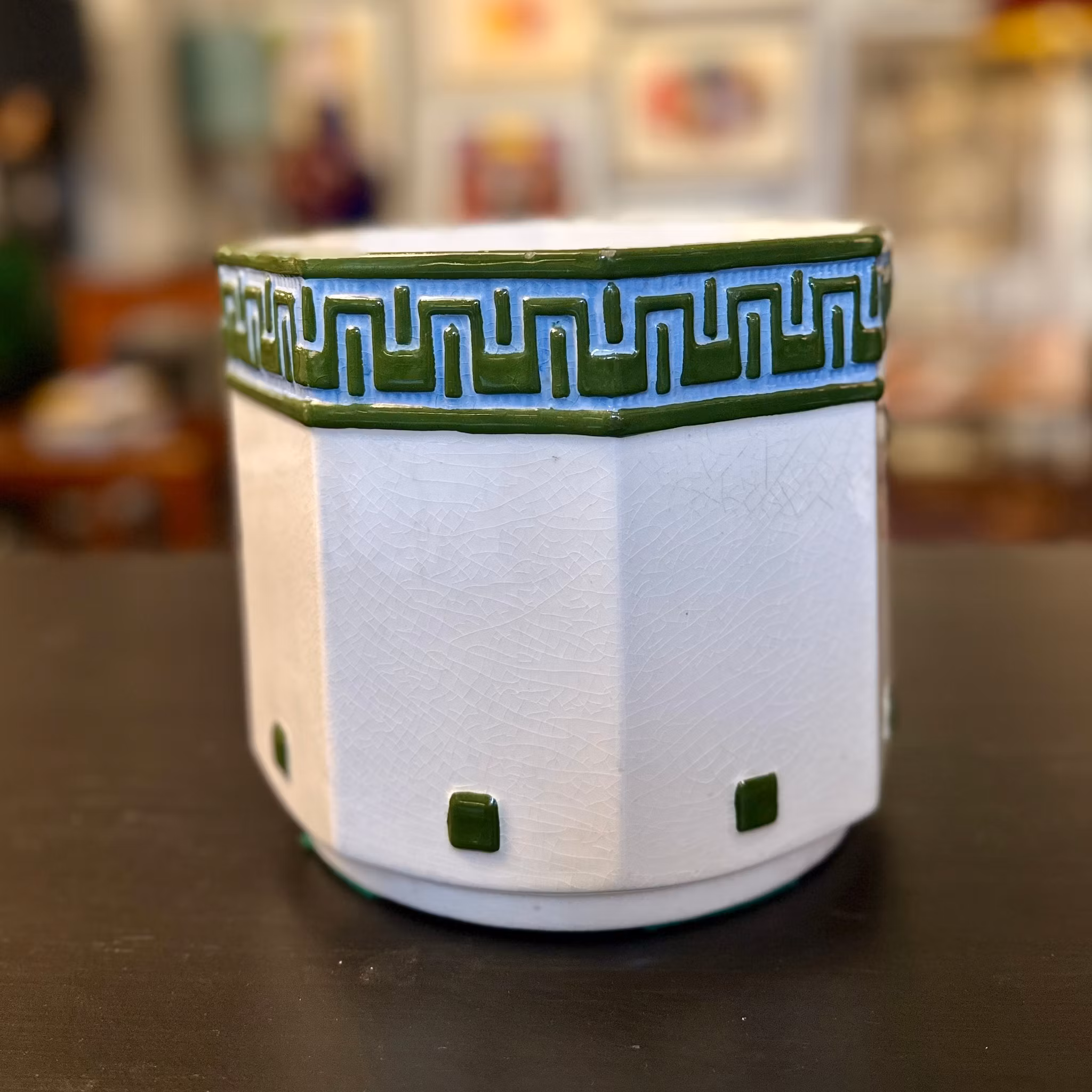 Art Deco-blomkruka i keramik. Höjd: 19 cm, diameter: 19 cm. Normalt bruksslitage.