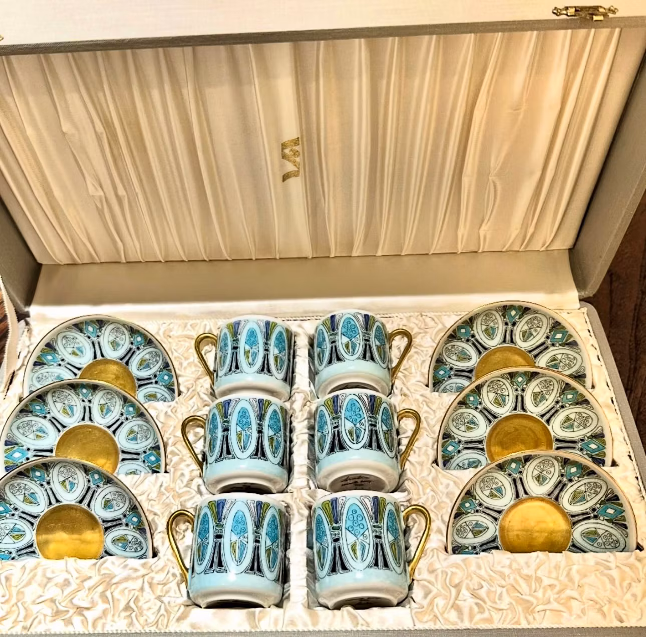Sex stycken espressokoppar ur serien Leila från Arabia, förpackade i schatull. Höjd: 6 cm. Perfekt skick.