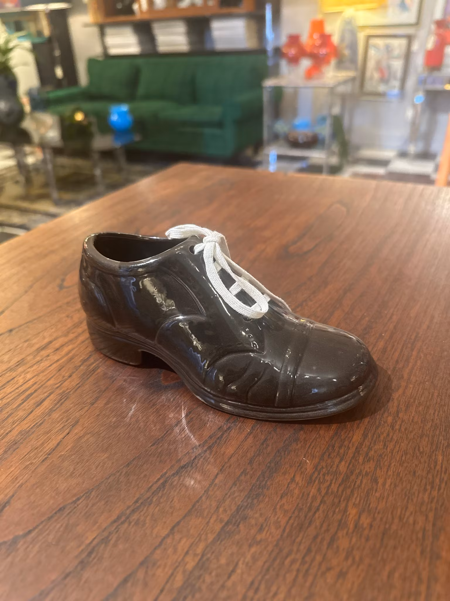Svart porslinssko. Längd: 13 cm. Bra skick.