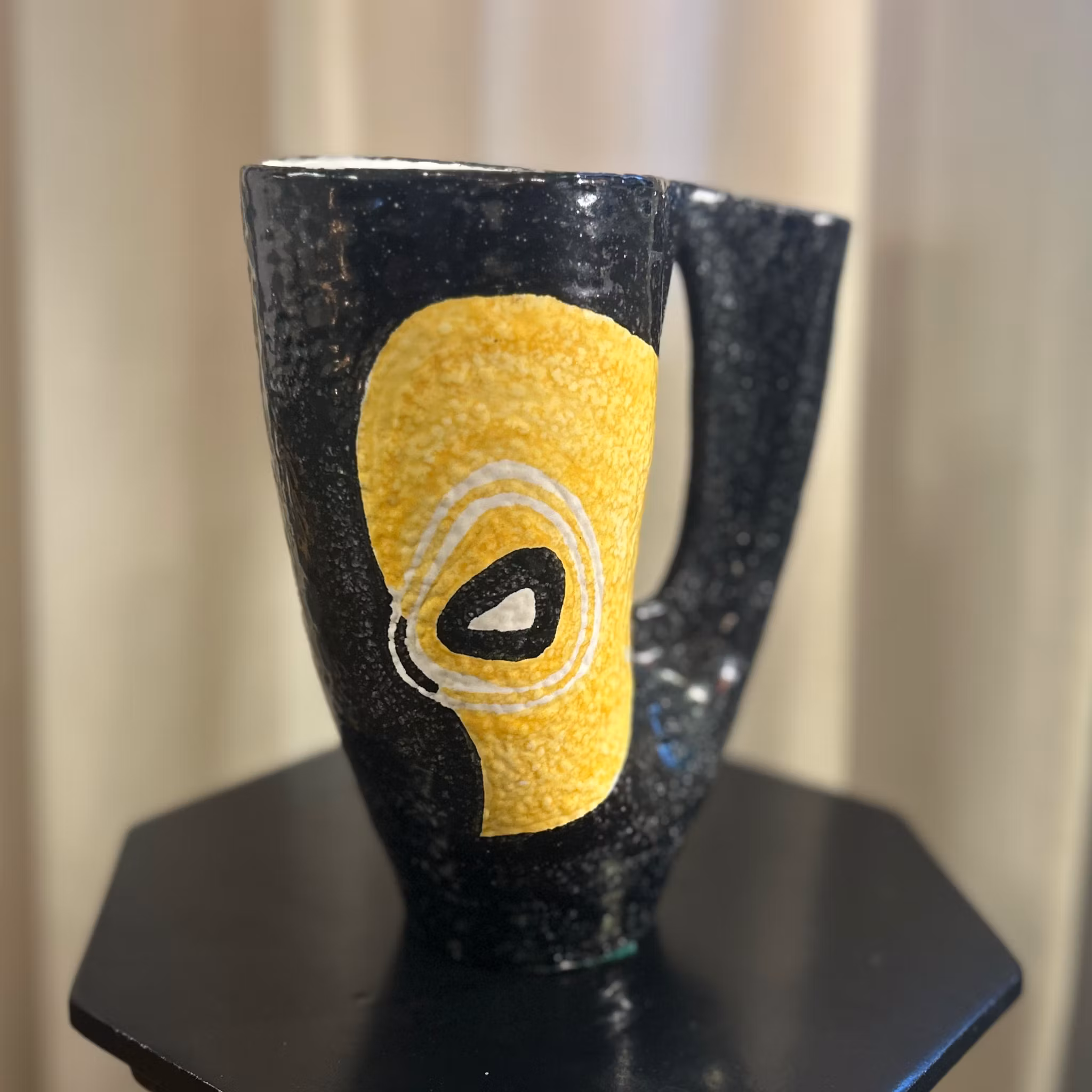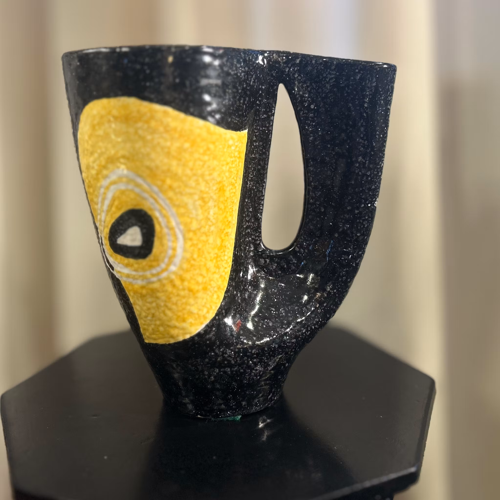 Stilfull italiensk vas från Bagni Ceramiche, daterad till 1900-talets andra hälft. Karaktäristisk form och glaserad yta.