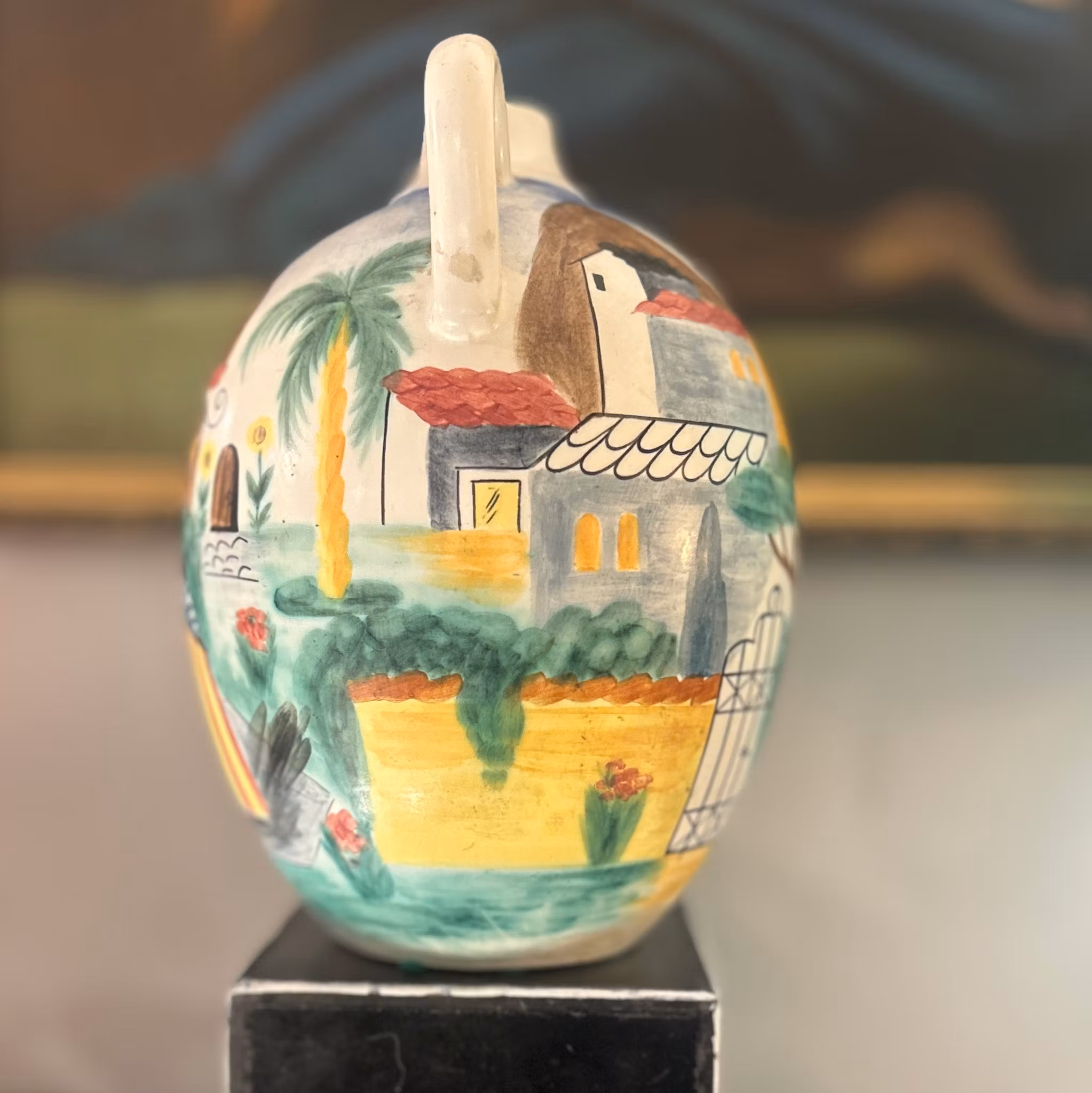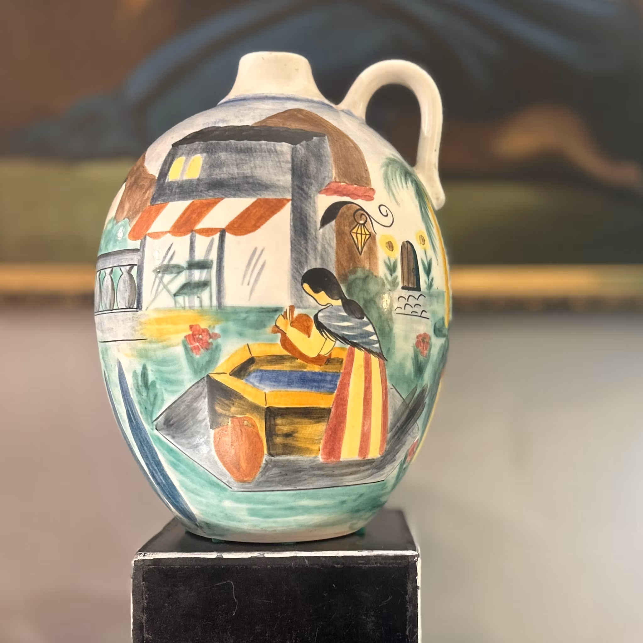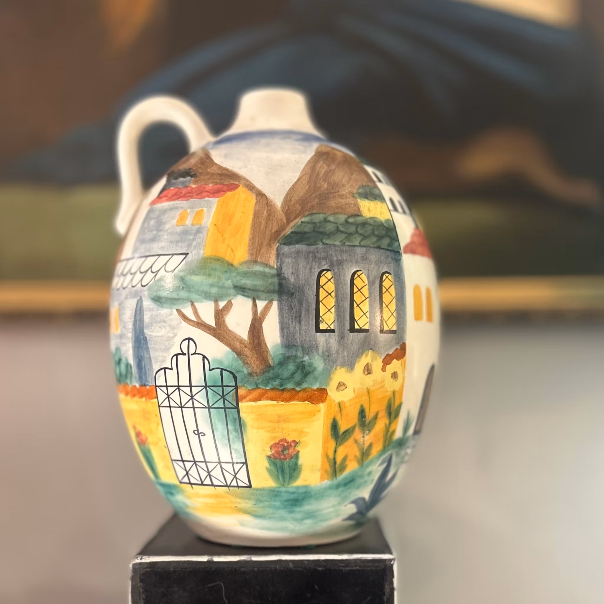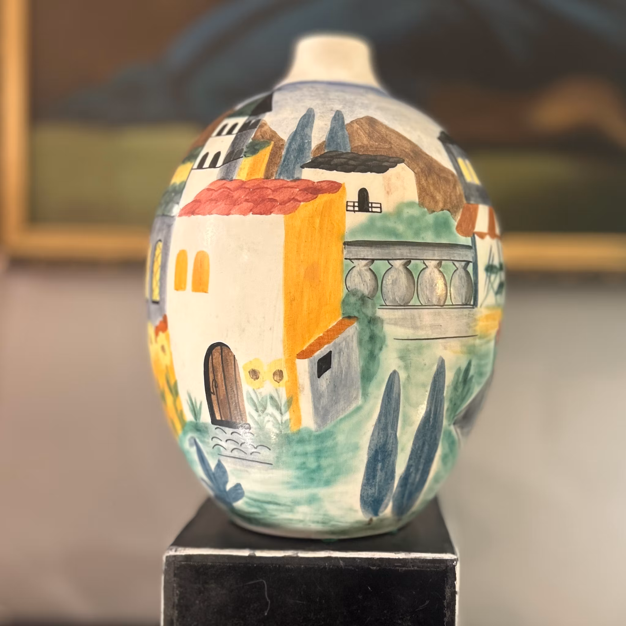 Rörstrandsvas med stadsmotiv, designad av LG. Perfekt för blommor eller som dekorativt inslag. Höjd: 30 cm.