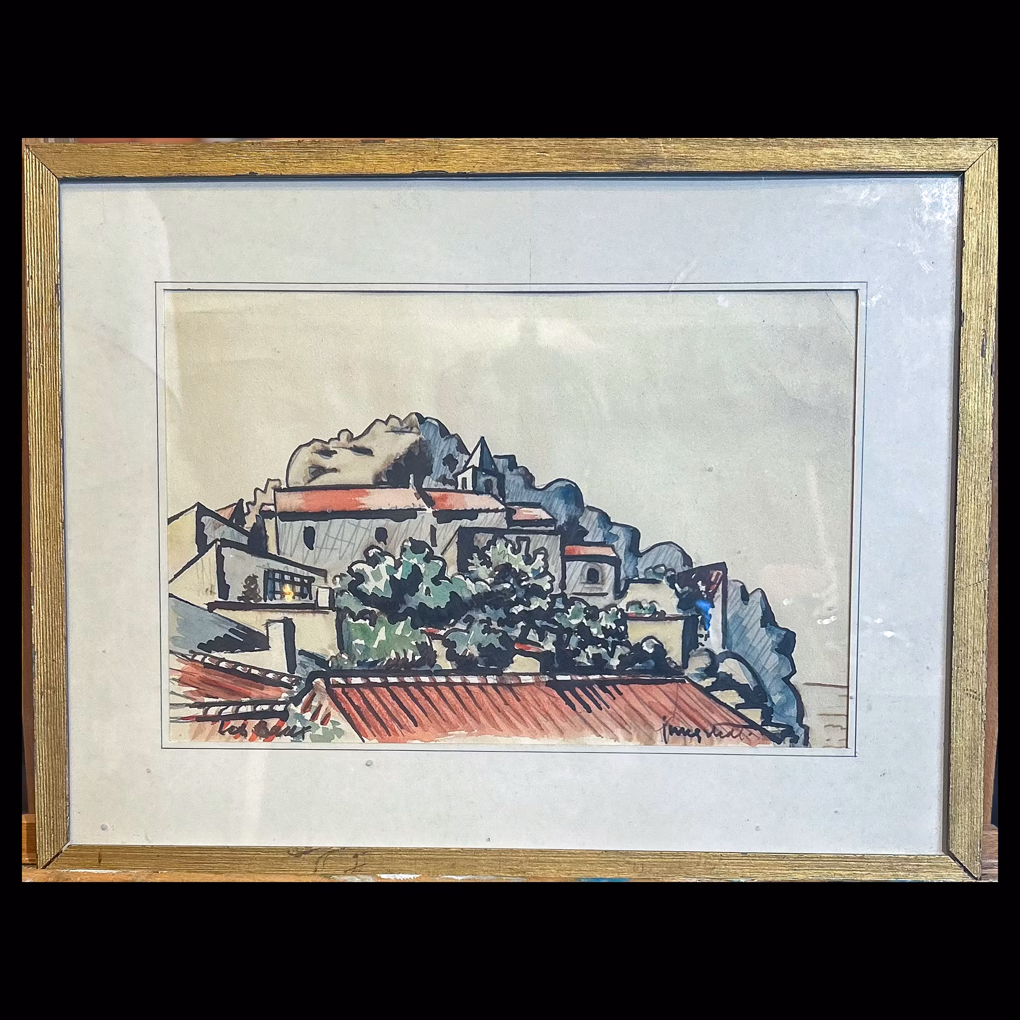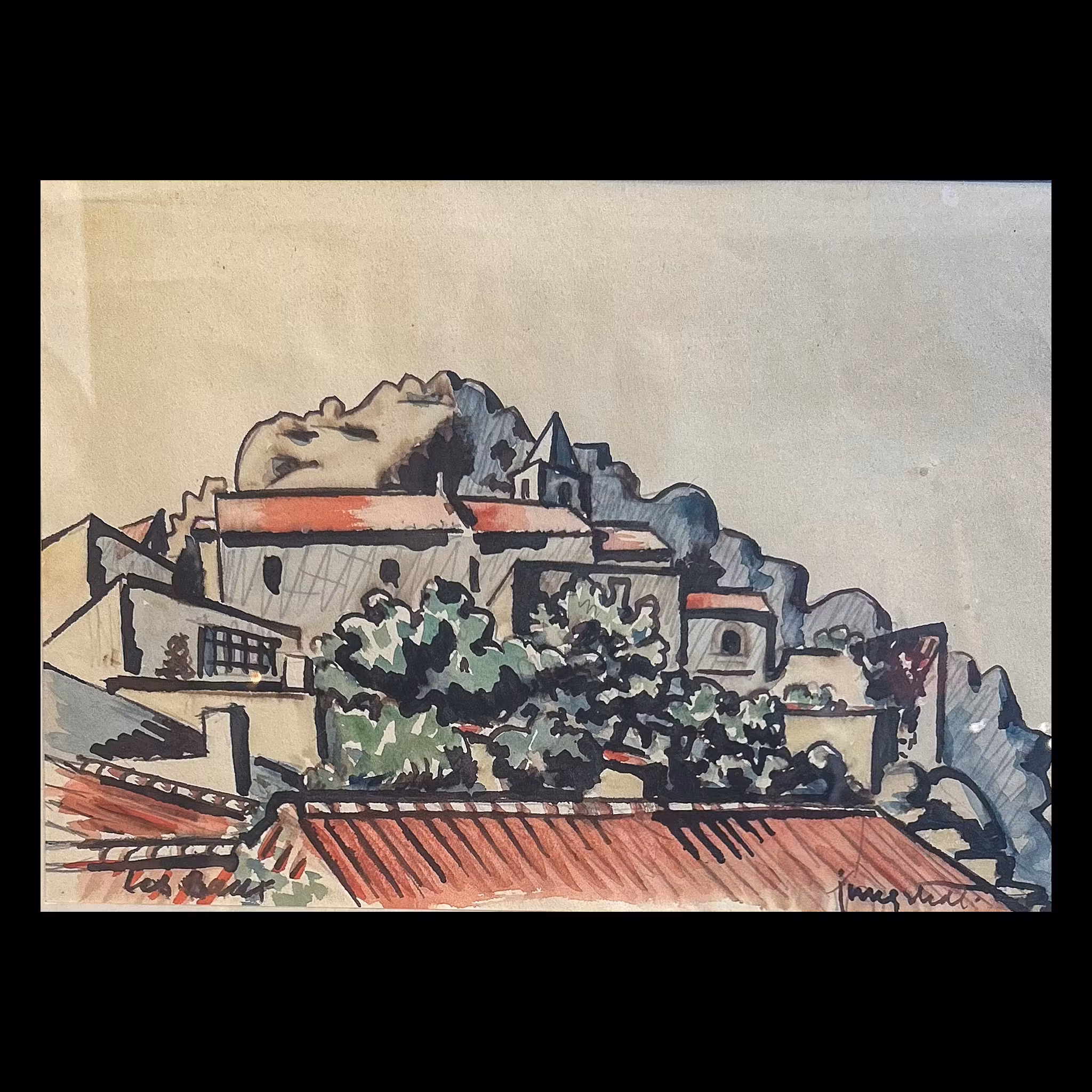 Signerade akvareller av Kurt Jungstedt med motiv från "Les Baux". Bildmått: 25x60 cm, yttermått inkl ram: 30x66 cm.