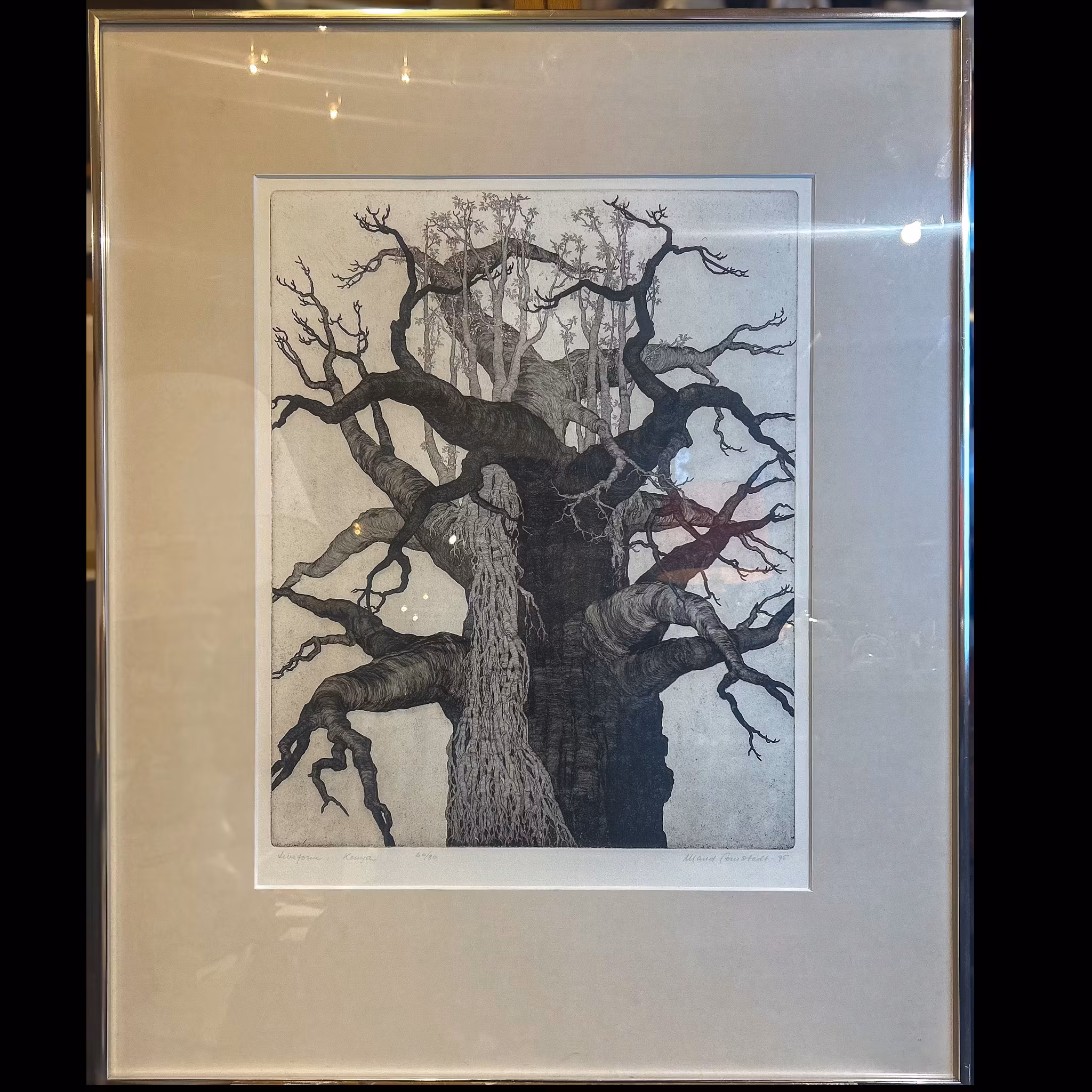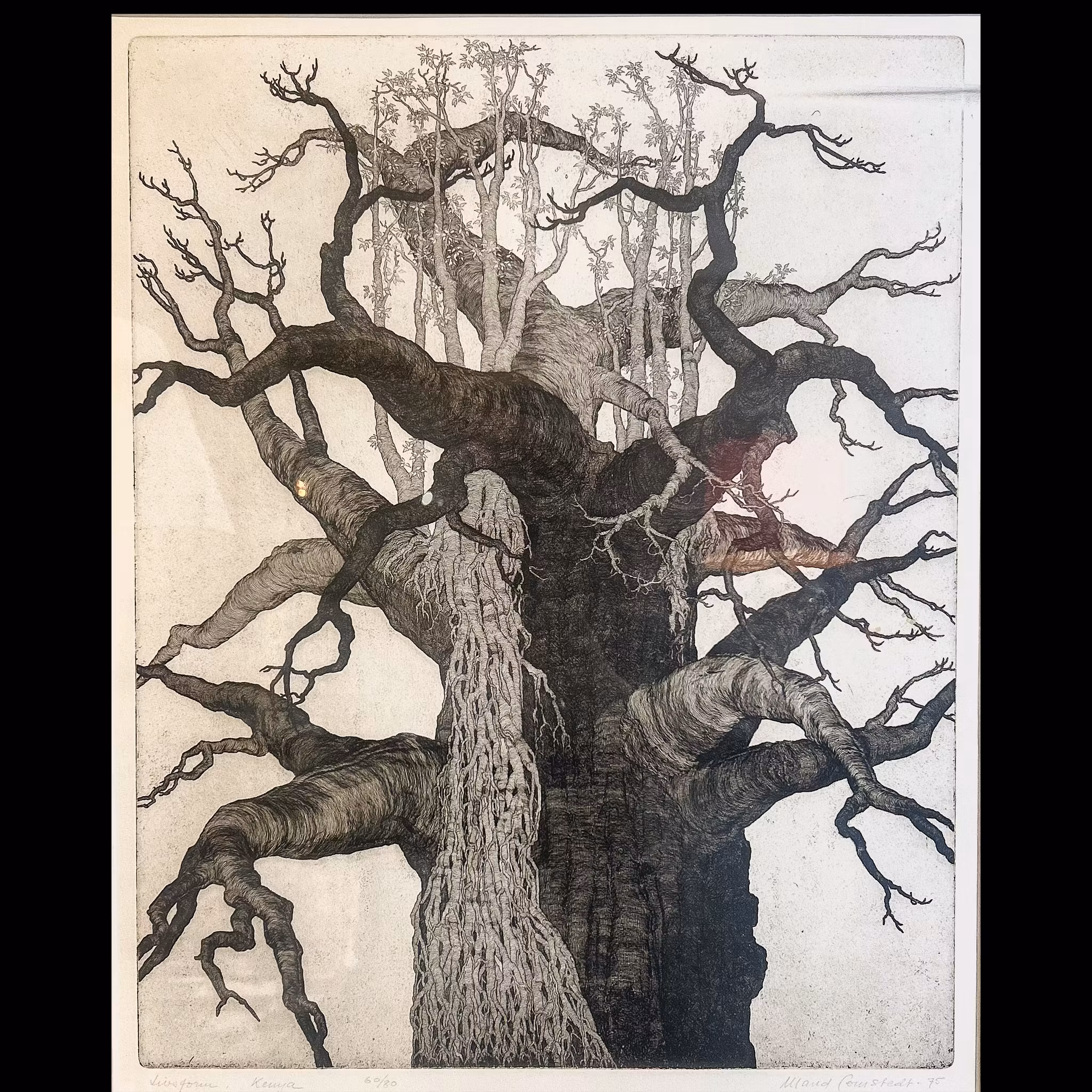 Signerad och numrerad etsning av Maud Comstedt, 1975. Starkt grafiskt uttryck och intressanta kontraster. Bildmått: 49,5x39,5 cm, yttermått inkl ram: 81x65 cm.