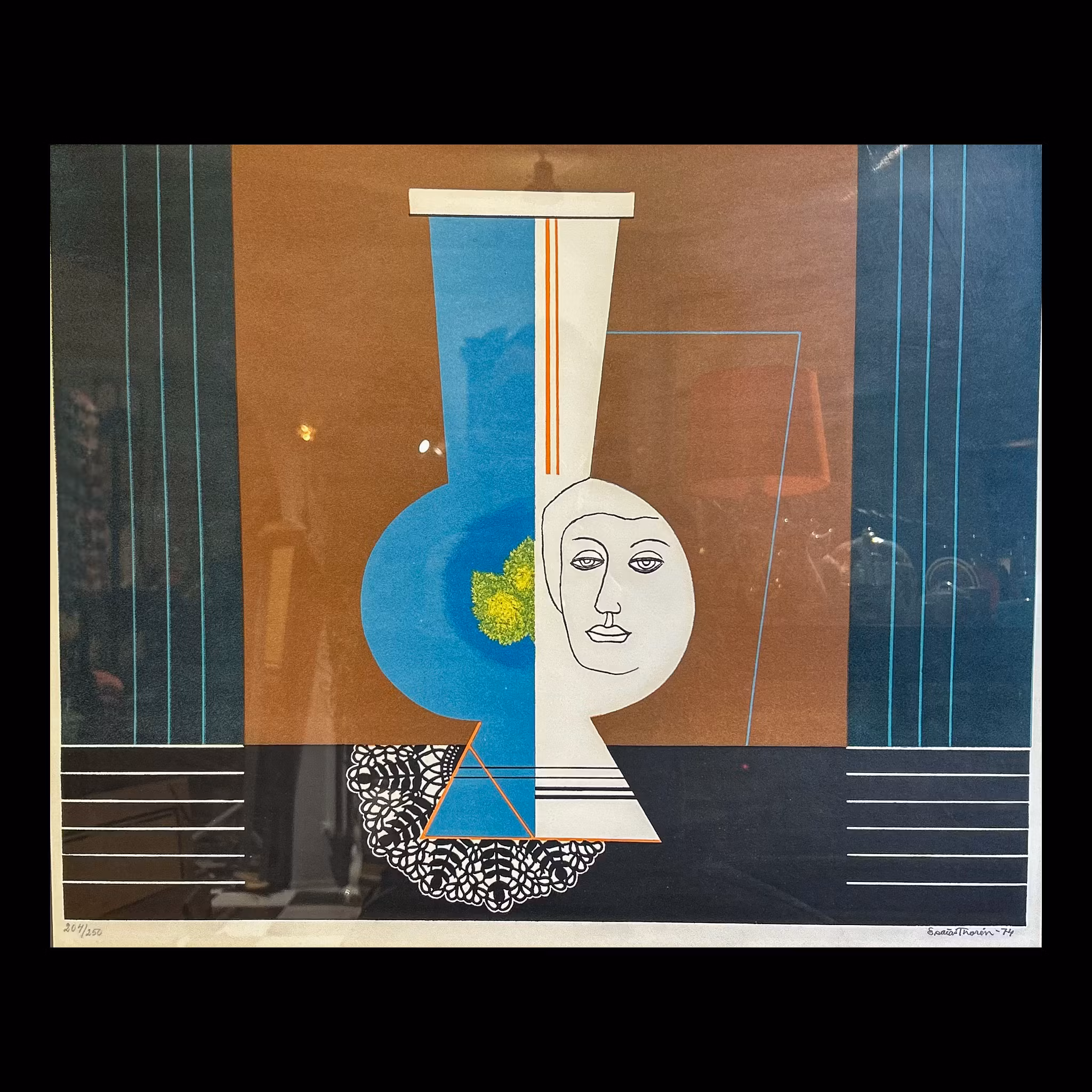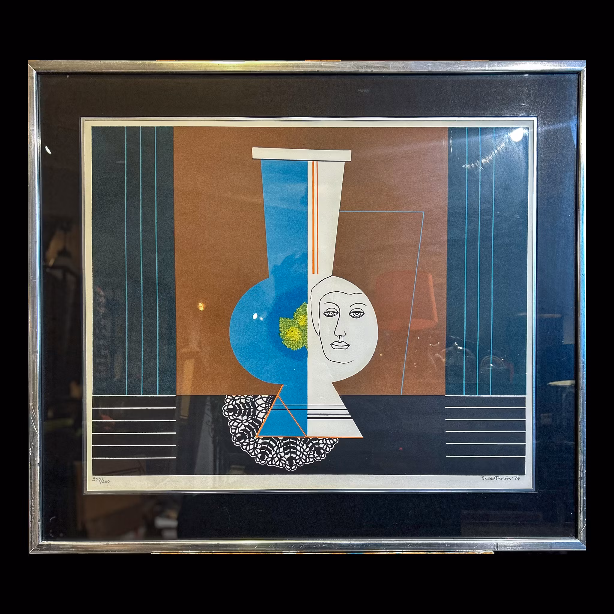 Signerad och numrerad färglitografi av Esaias Thorén. Dynamisk komposition med livliga färger. Bildmått: 50x60 cm, yttermått inkl ram: 67x77 cm.