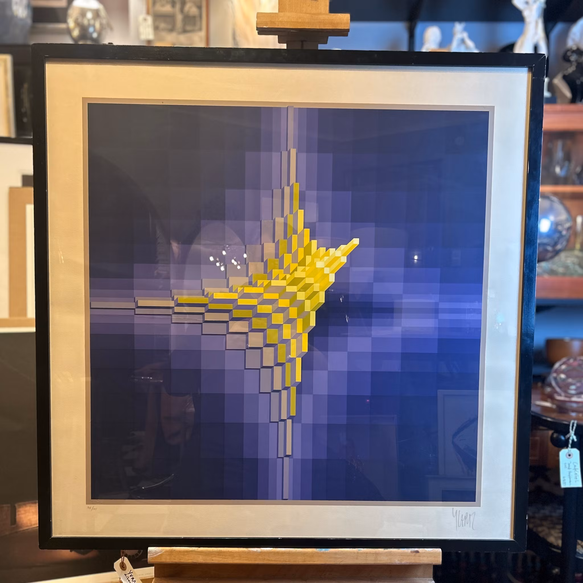 En elegant färglitografi av Yvaral (Victor Vasarelys son), 148/175, signerad i blyerts. Bild 63x63 cm, yttermått 78x78 cm. Gulnad passepartou, annars bra.