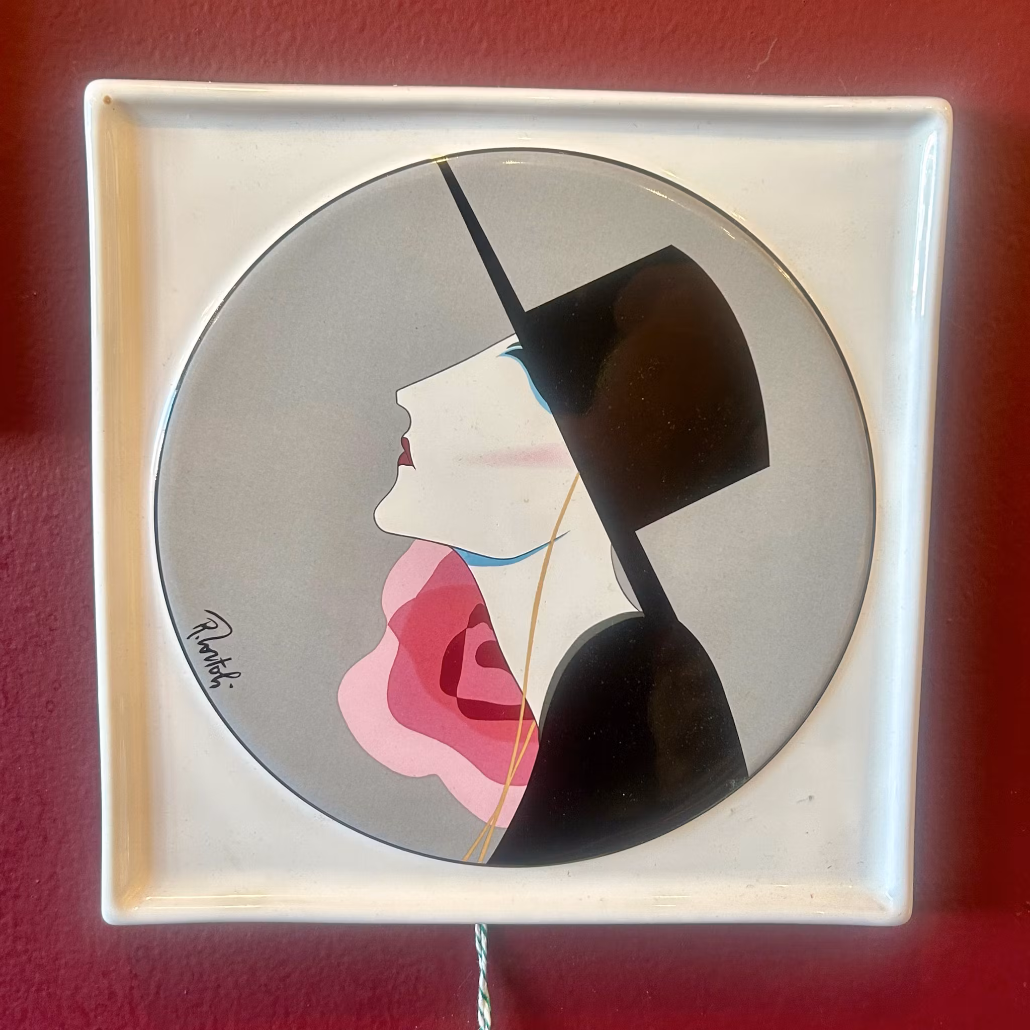 En keramisk relief, 70-tal, föreställande kvinna i profil, signerad. 22x22 cm. Utmärkt skick.