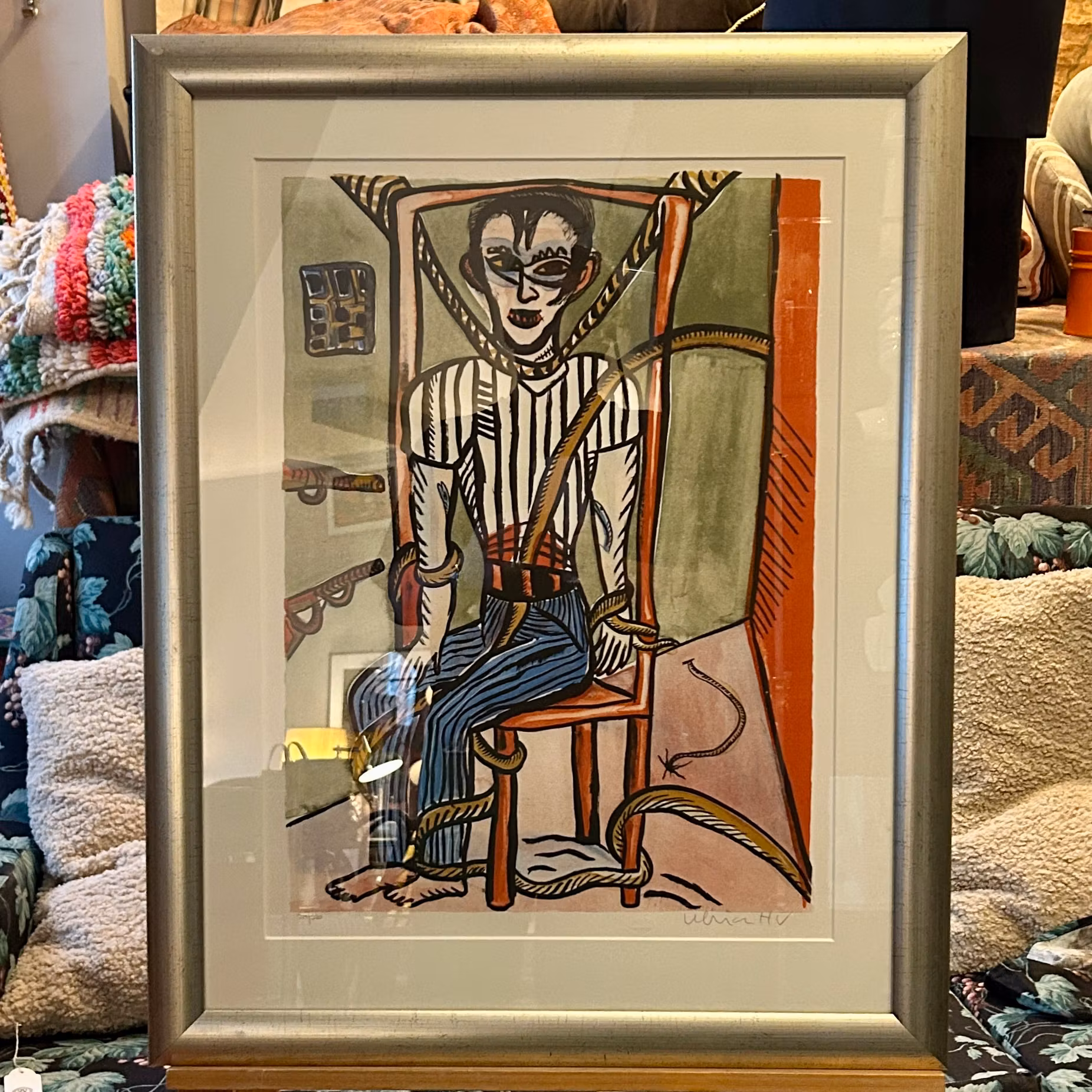 Litografi "Man och ormar" Ulrika Hydman-Vallien Numrerad 319/320 Signerad Bildmått 43x58 med ram 60x77