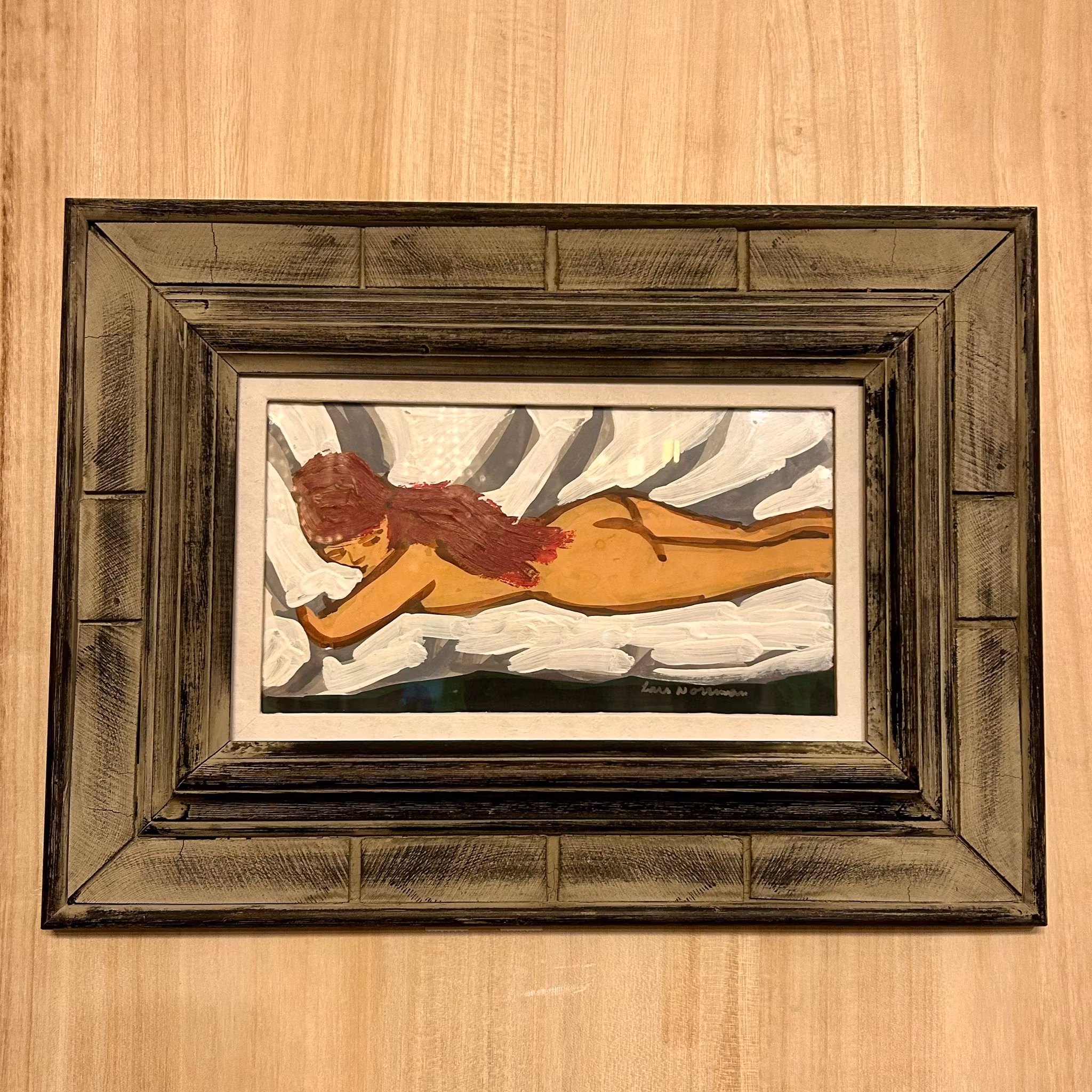 Liten olja på duk bakom glas. Lars Norrman (1915-1979) Signerad "Vilande kvinna" 15x25 ram 34x46