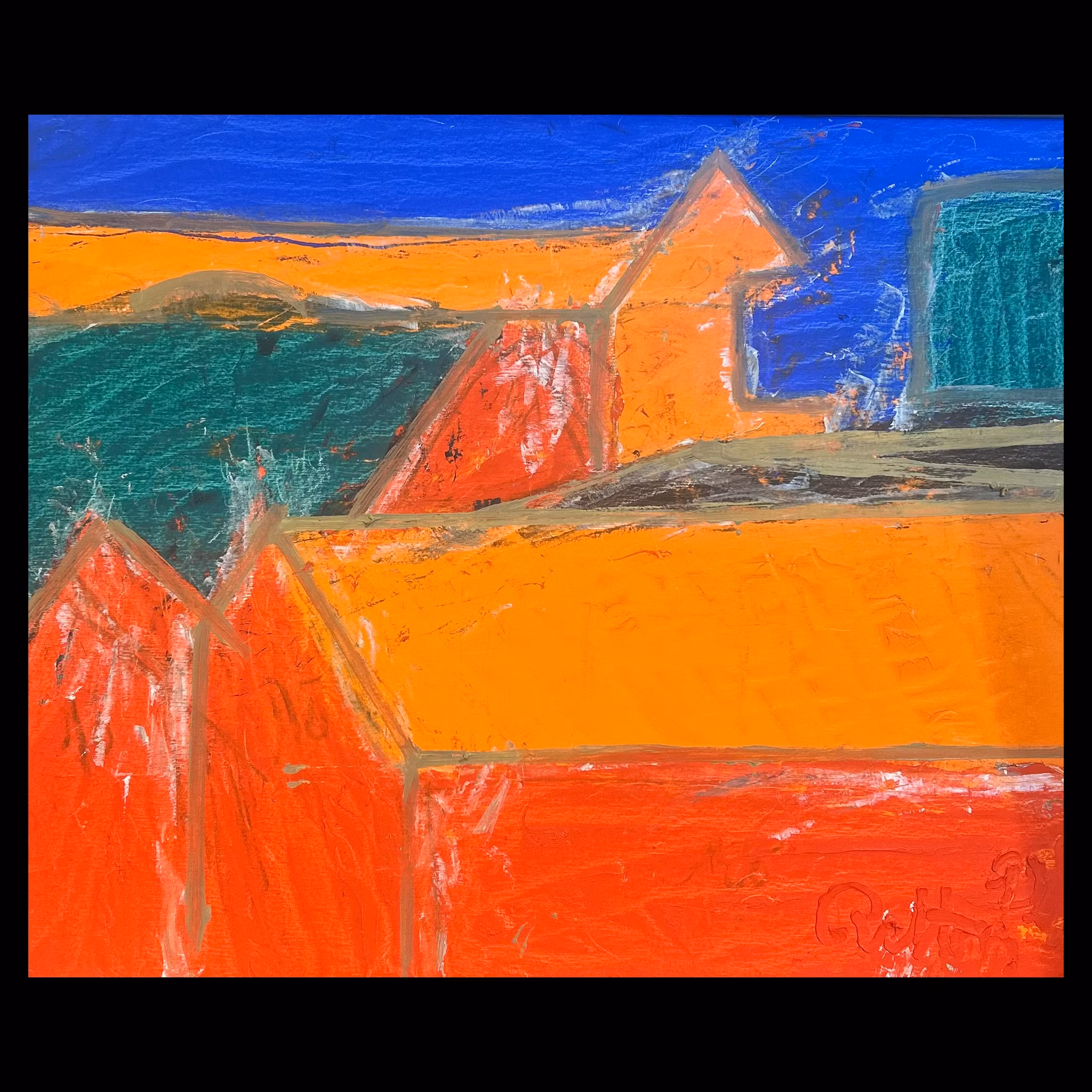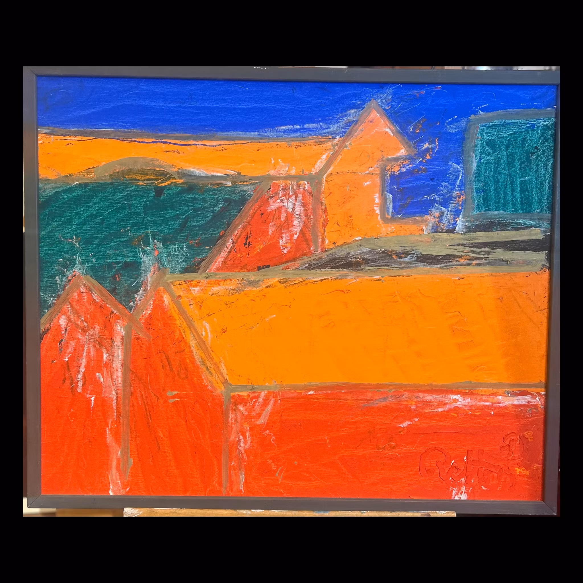 Signerad oljemålning av Ralph Rilton, Sverige. Titel: "Ateljéutsikt Torshälla". Daterad 1992. Mått: 59x72 cm, yttermått inklusive ram: 62x76 cm.