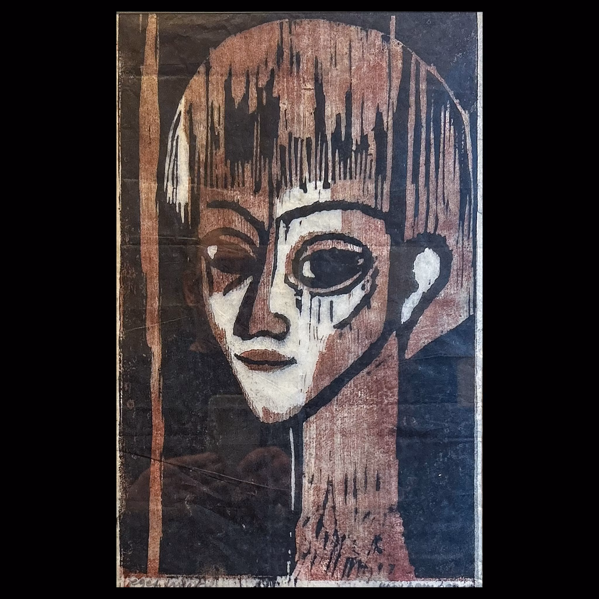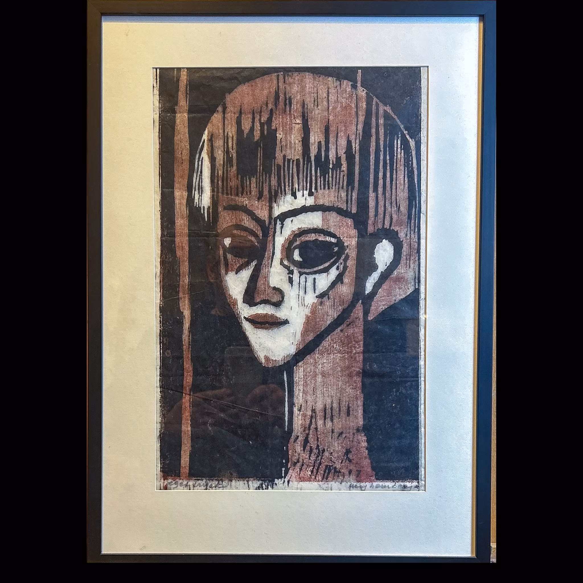 Signerad originalträsnitt av Maj Hemberg. Porträtt i klassisk stil.