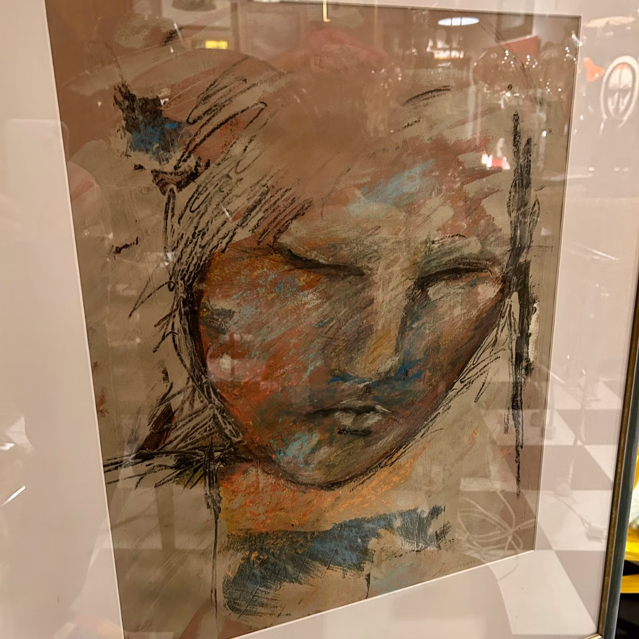 Pastell av Åsa Ardin Kedja. Komposition med ansikte. Sign och daterad -99.