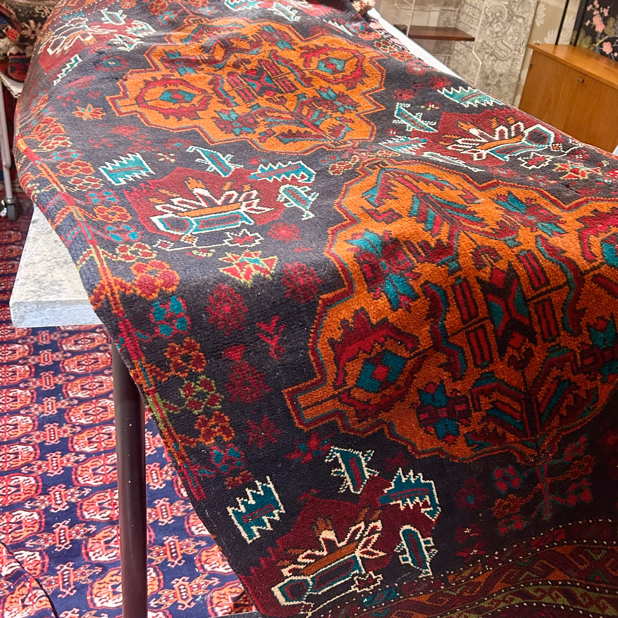 Handknuten matta, mått: 138x200 cm. Beluch.