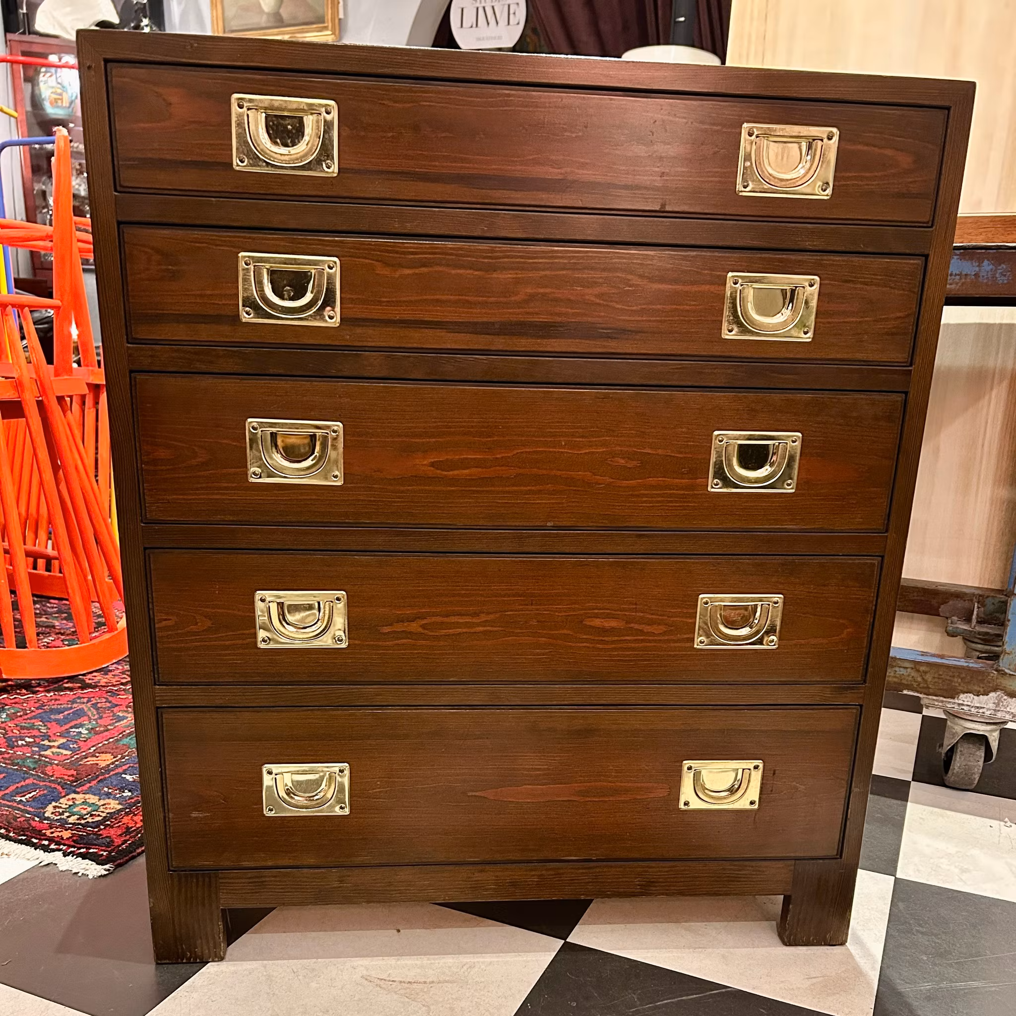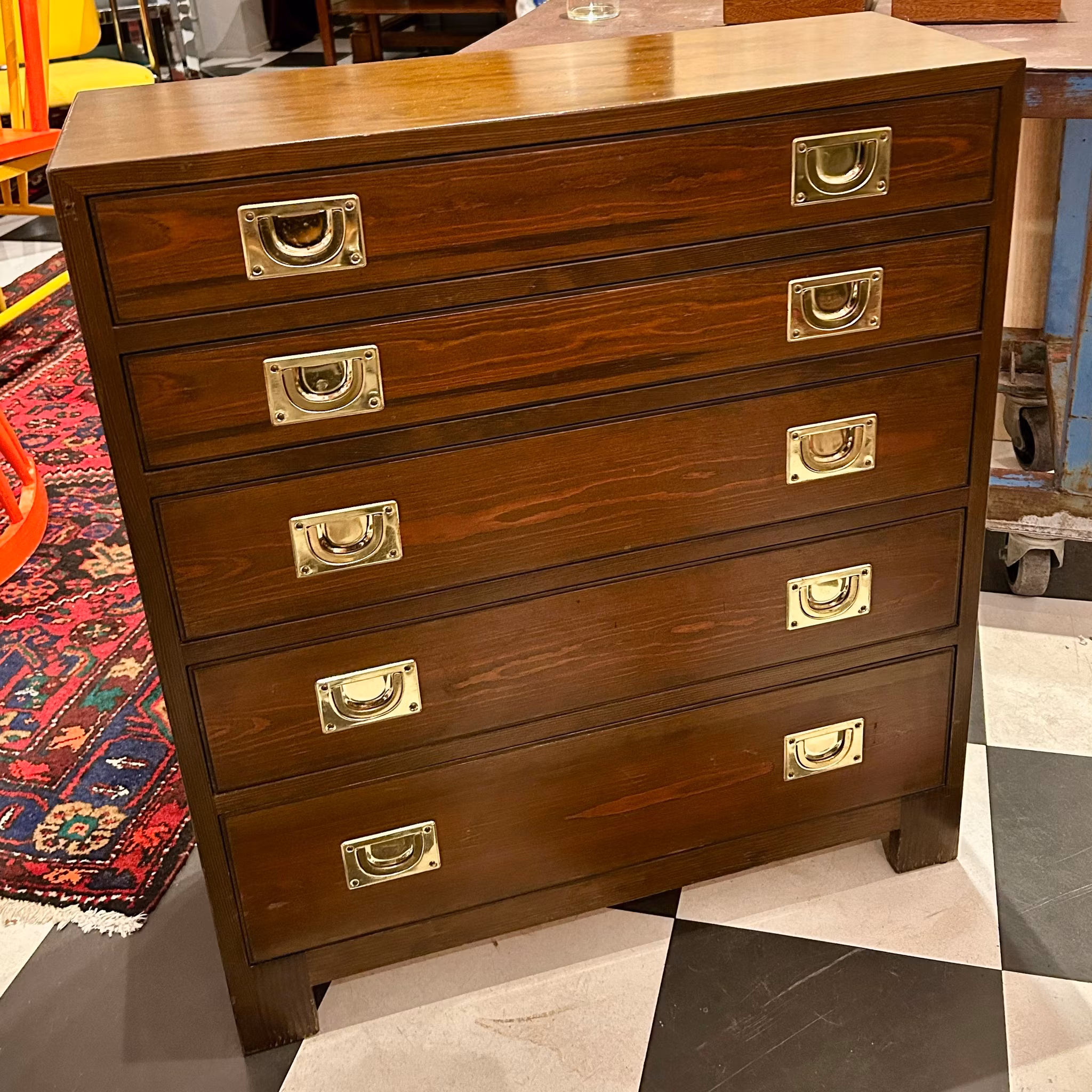 Byrå med fem lådor. Ettiketsmärkt NK. H 80 Dj 25