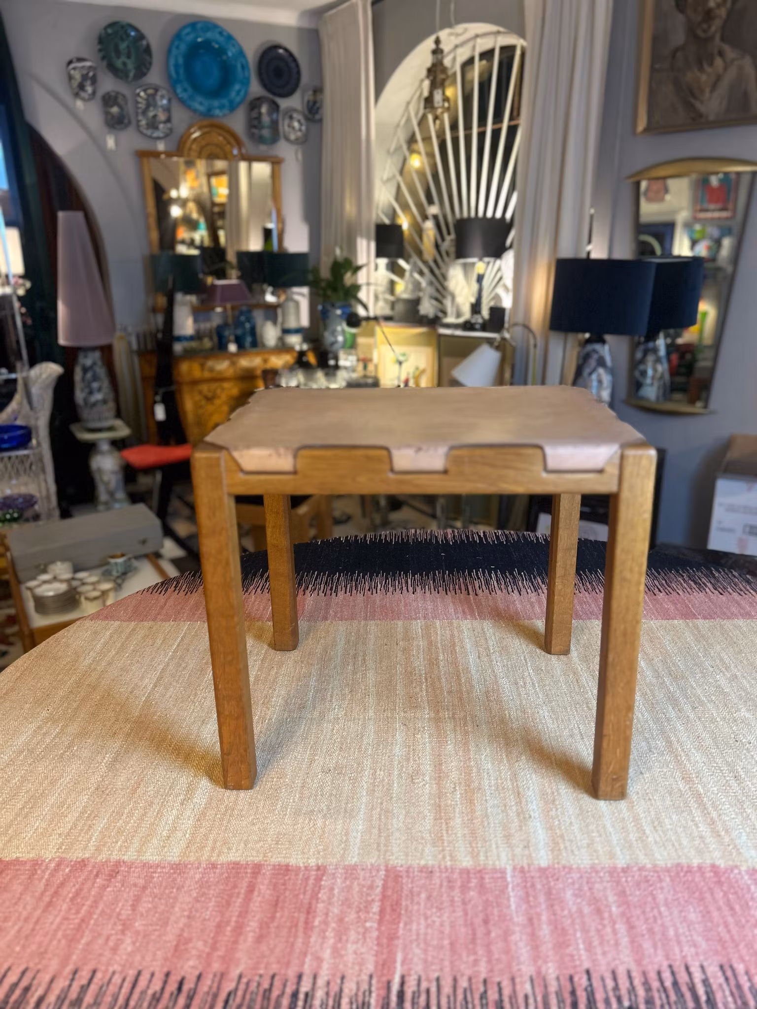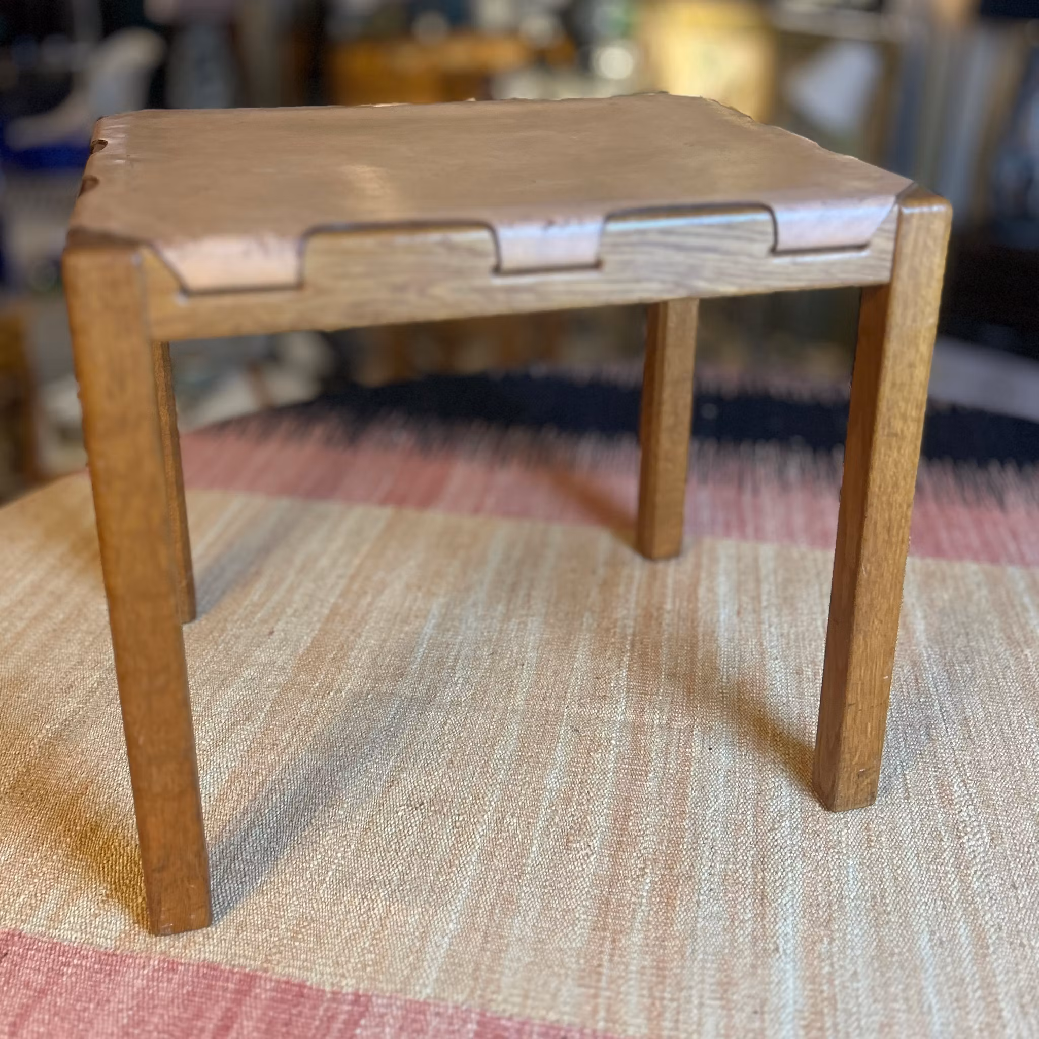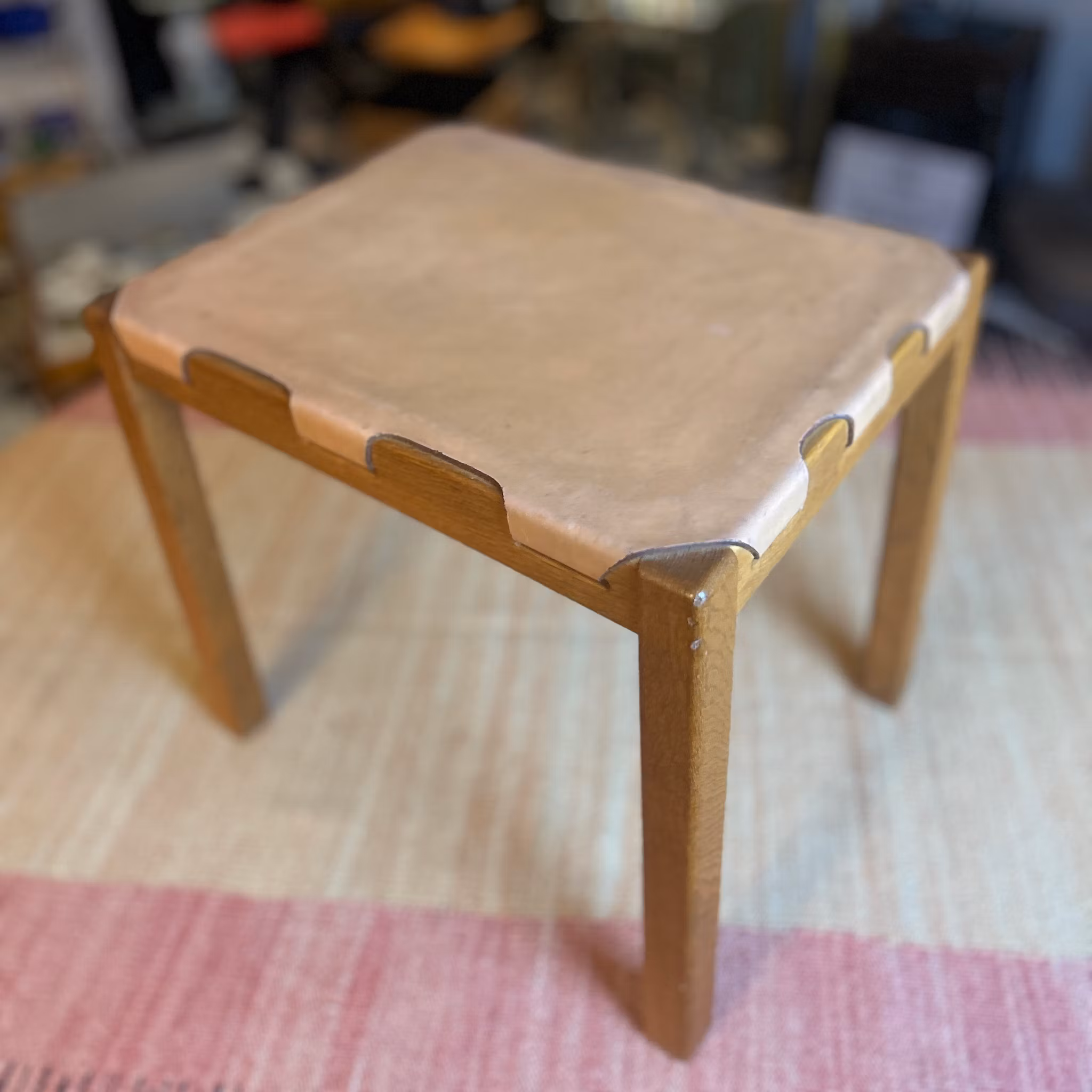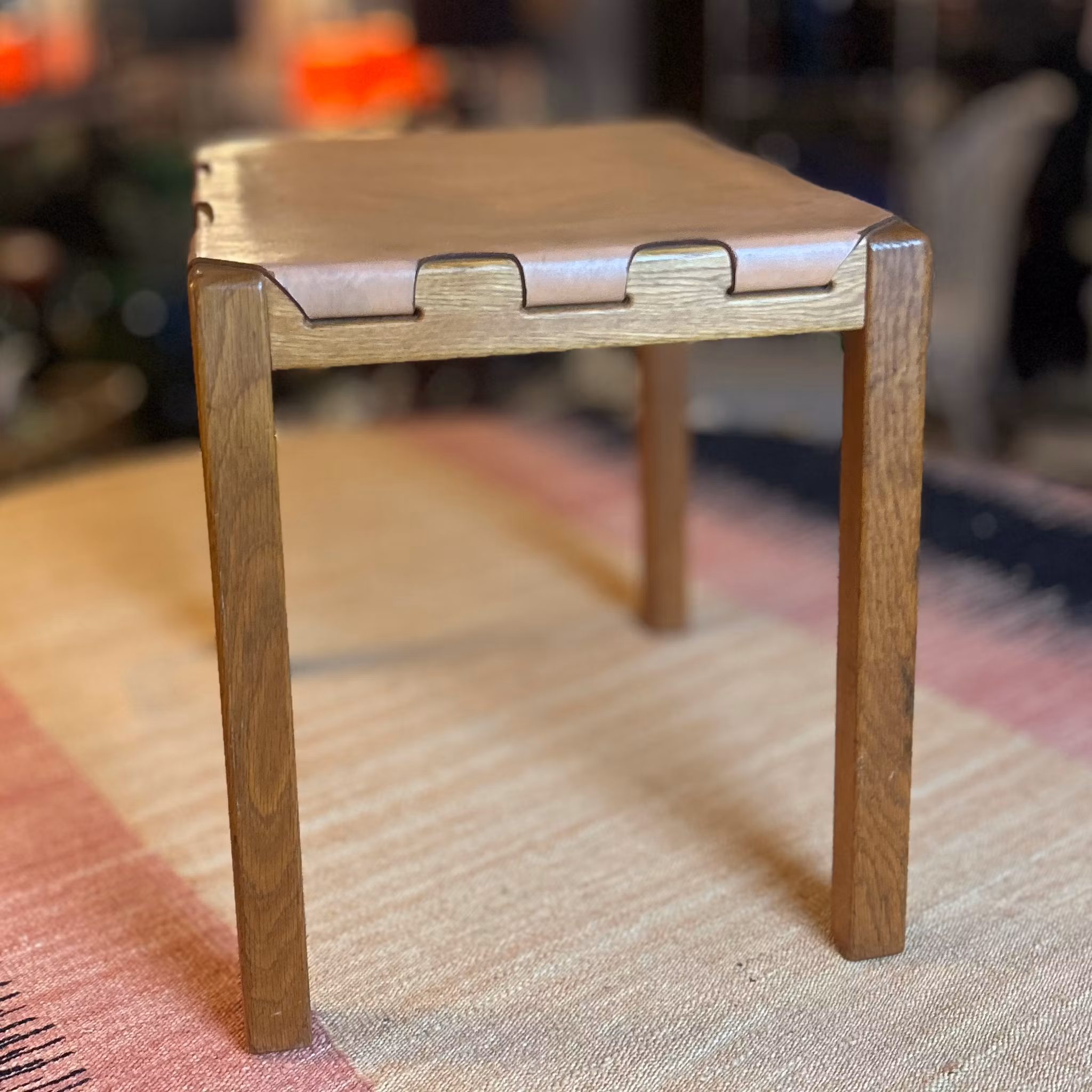 Designpall modell 1040 från Markaryd, 1960-tal. Tillverkad i teak och läder. Längd: 45 cm, djup: 35 cm, höjd: 41 cm.