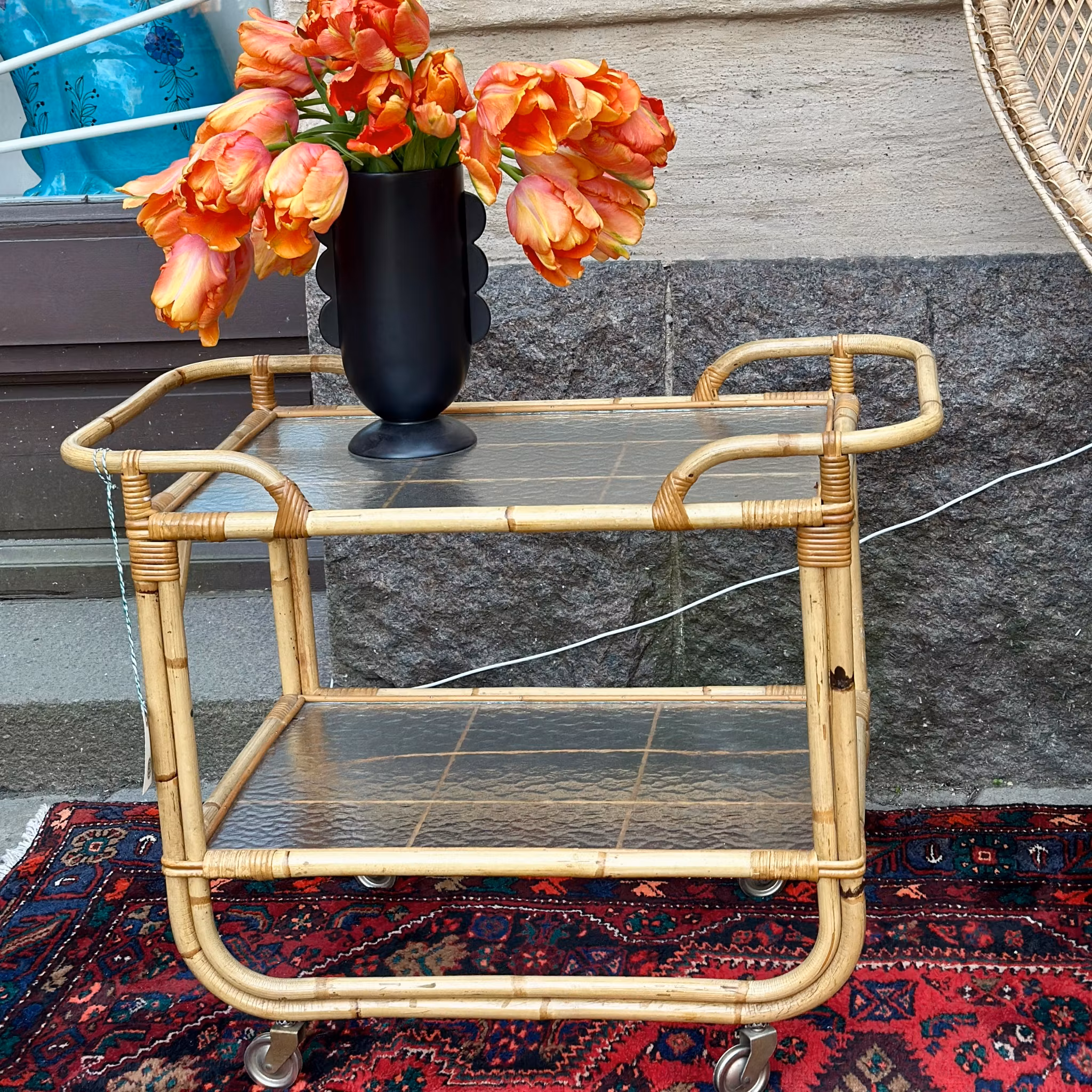 Elegant serveringsvagn i rotting. Längd: 81 cm.