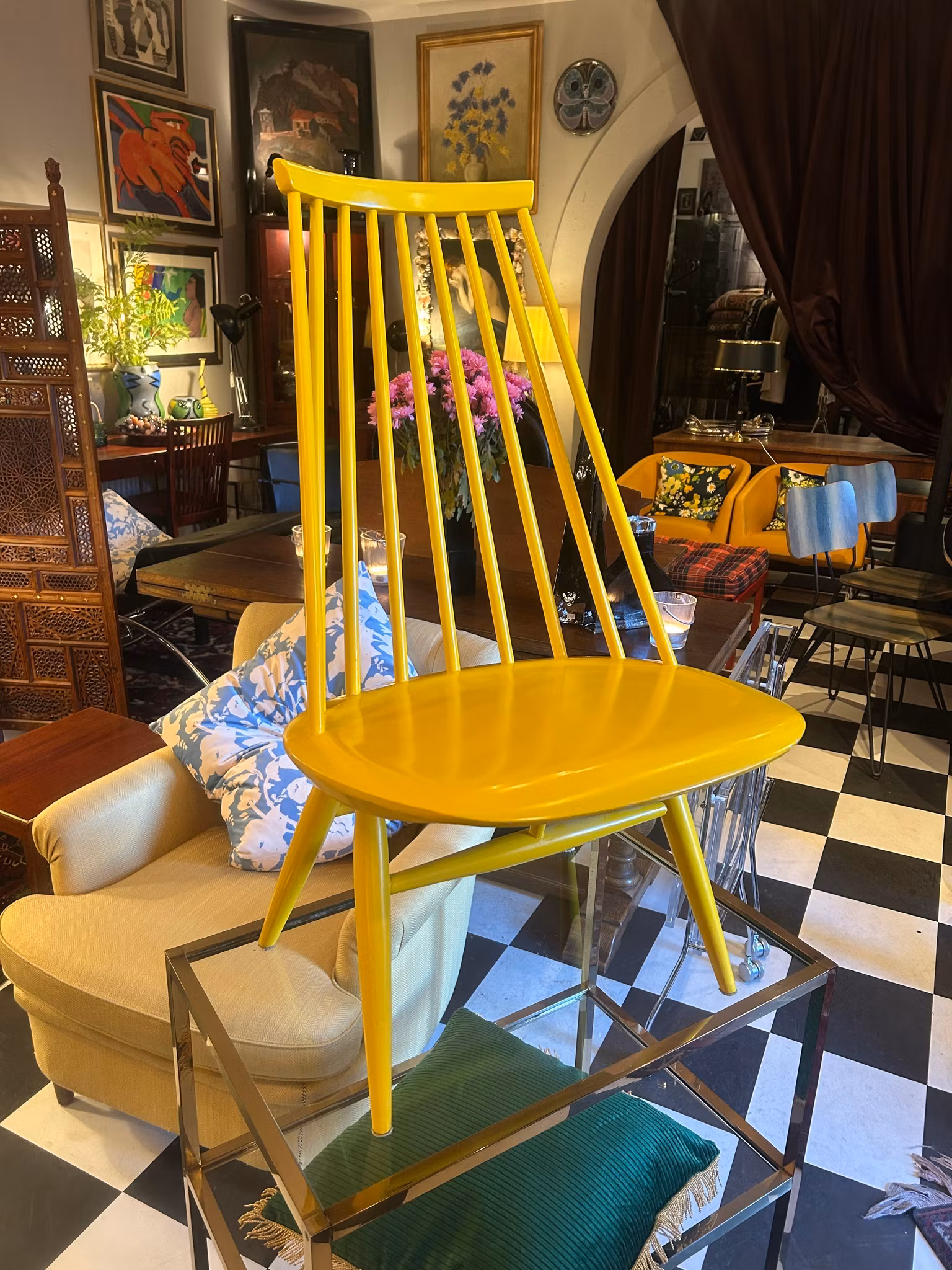 Stol av Ilmari Tapiovaara "Mademoiselle" Edsbyverken. Gul senare bemålad.
