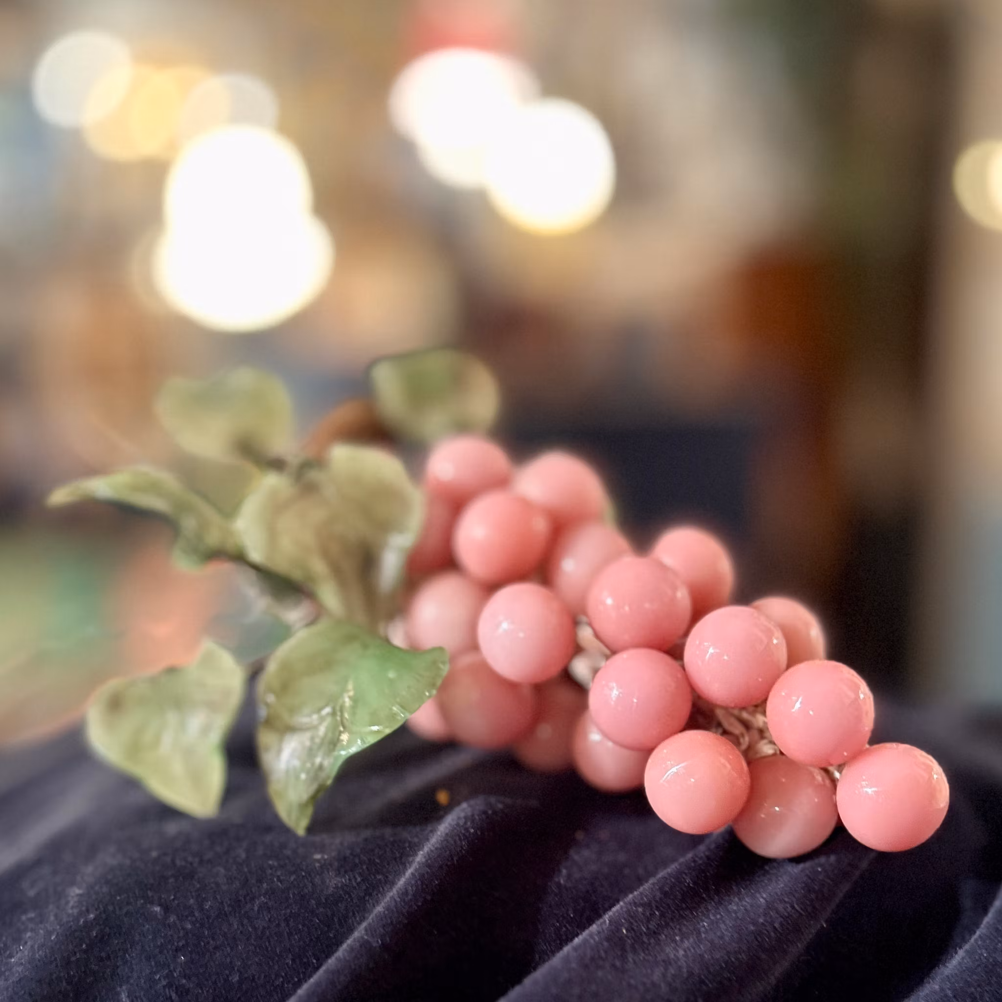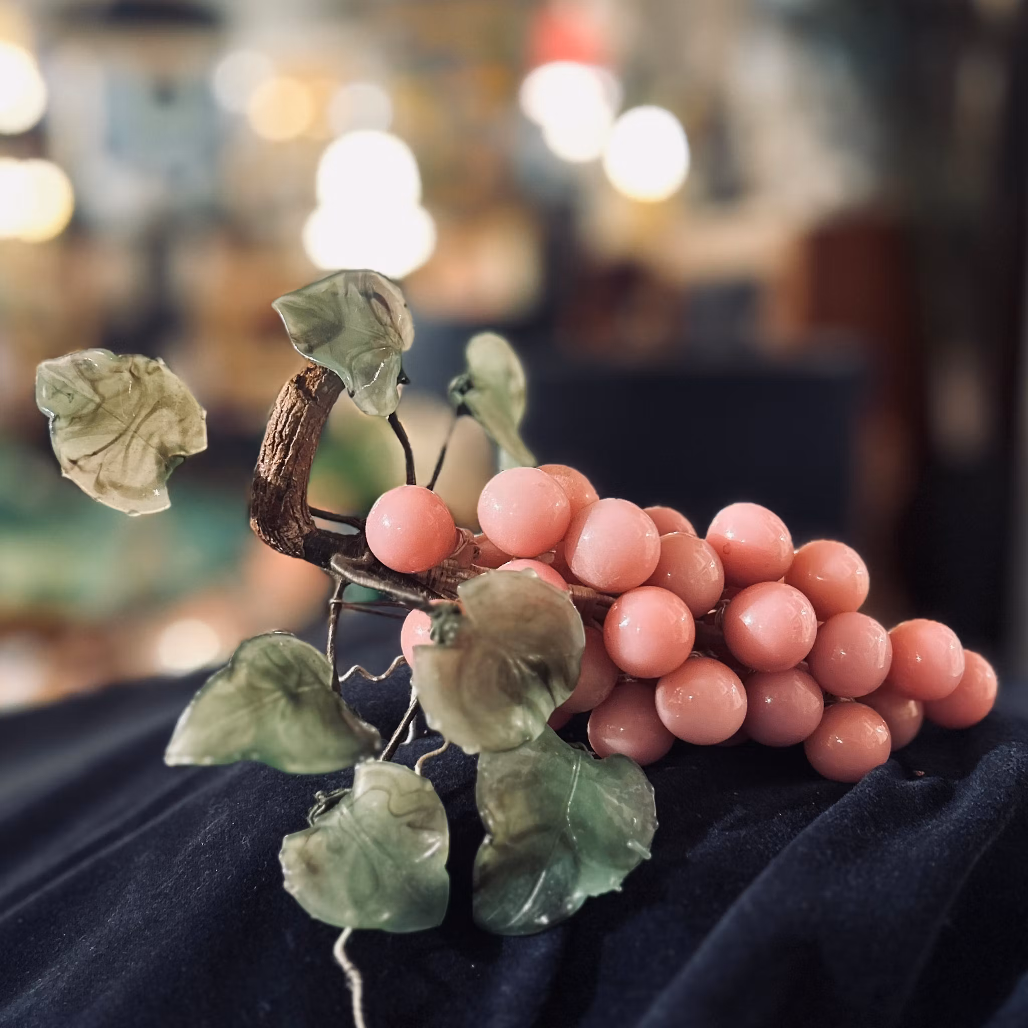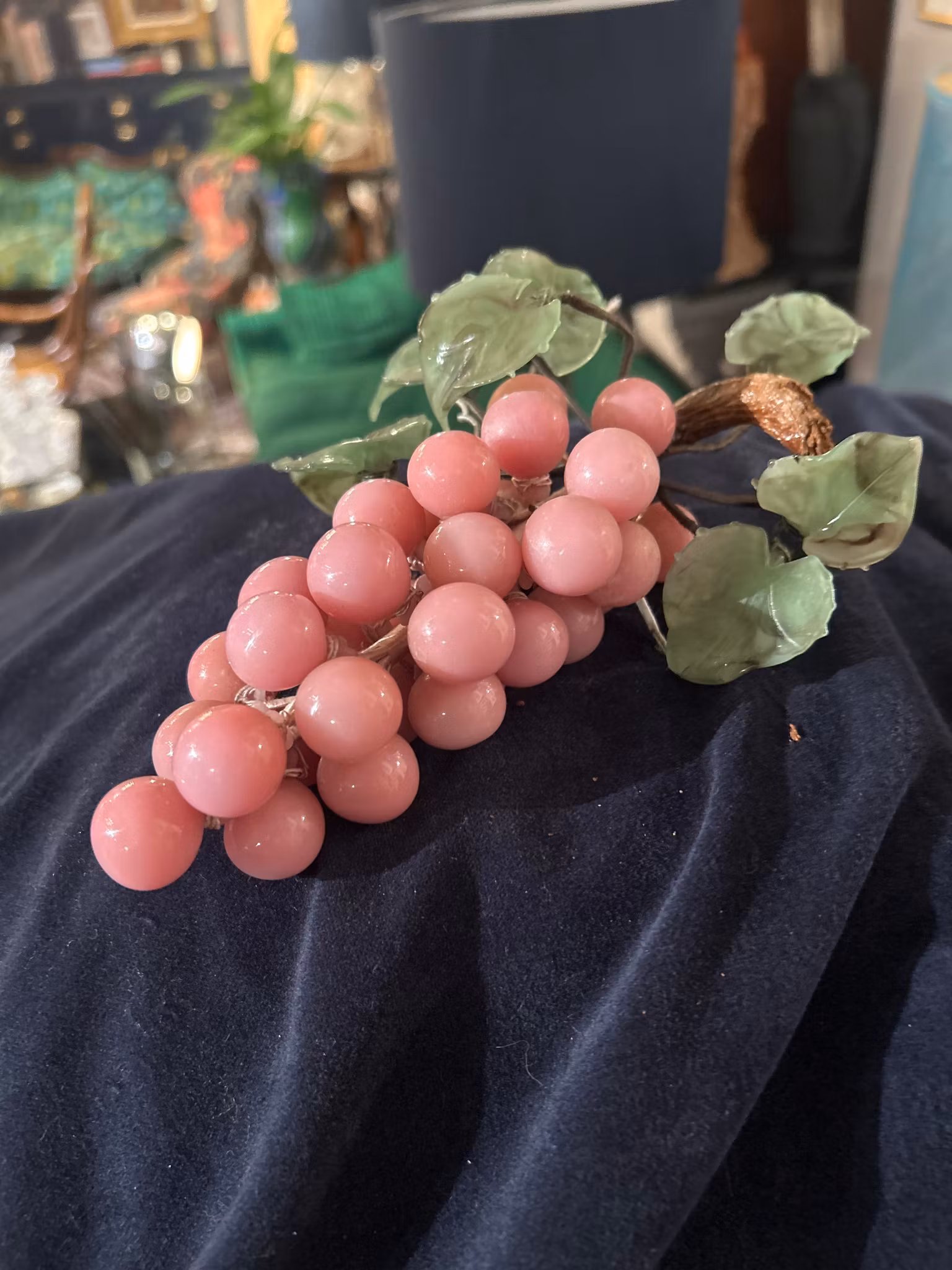 Prydnadsdruvor i rosa och gröna stenar och glas med enträkvist. Italien ca 21 cm