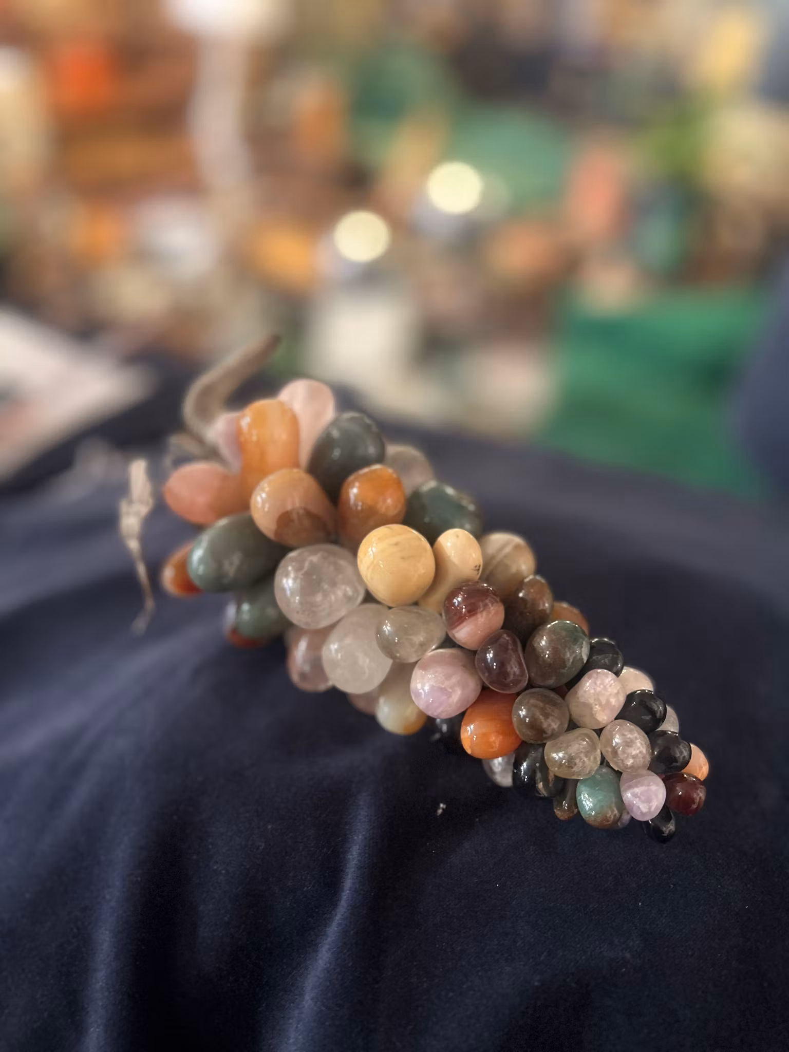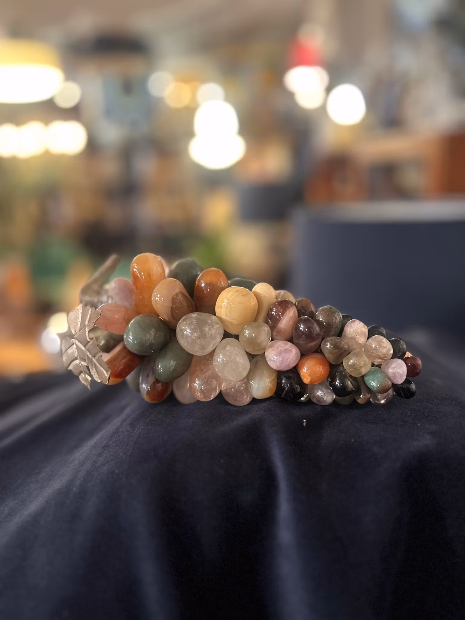 Prydnadsdruvor med olikfärgade stenar och silvermetall. Italien ca 21 cm