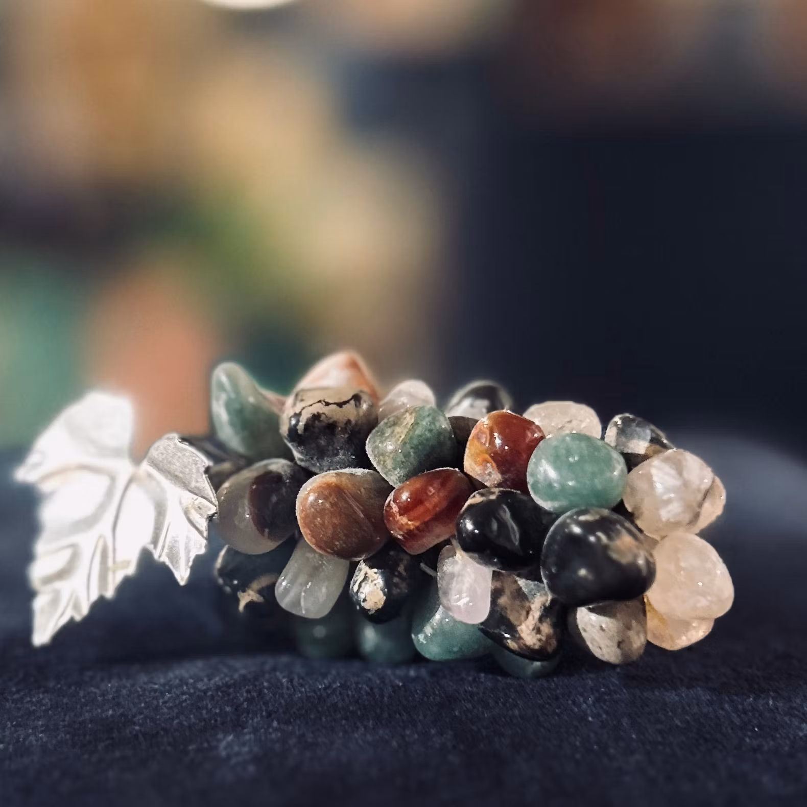 Prydnadsdruvor i olikfärgade stenar och silvermetall. Italien ca 8 cm