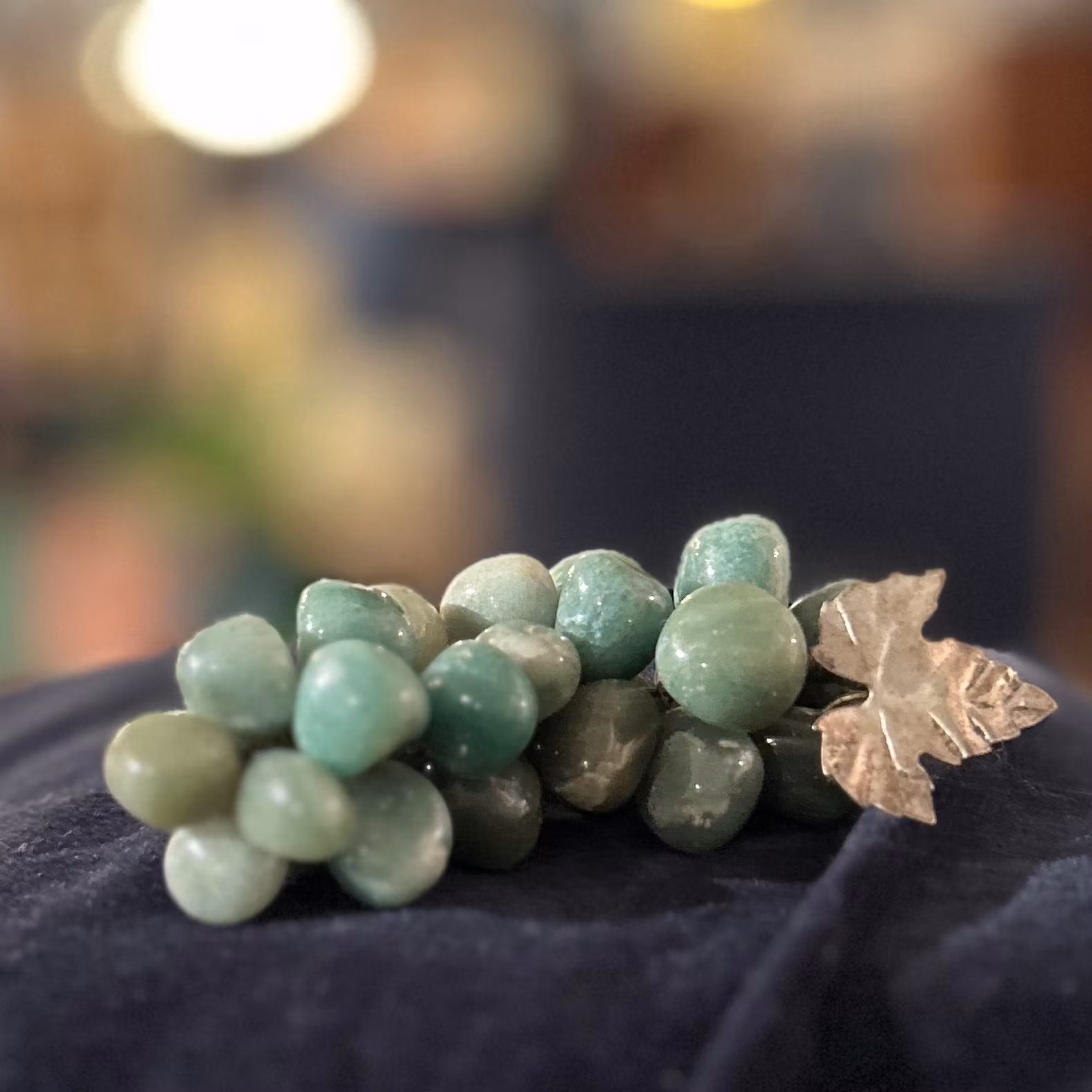 Prydnadsdruvor med dovt gröna stenar och silvermetall. Italien ca 11 cm