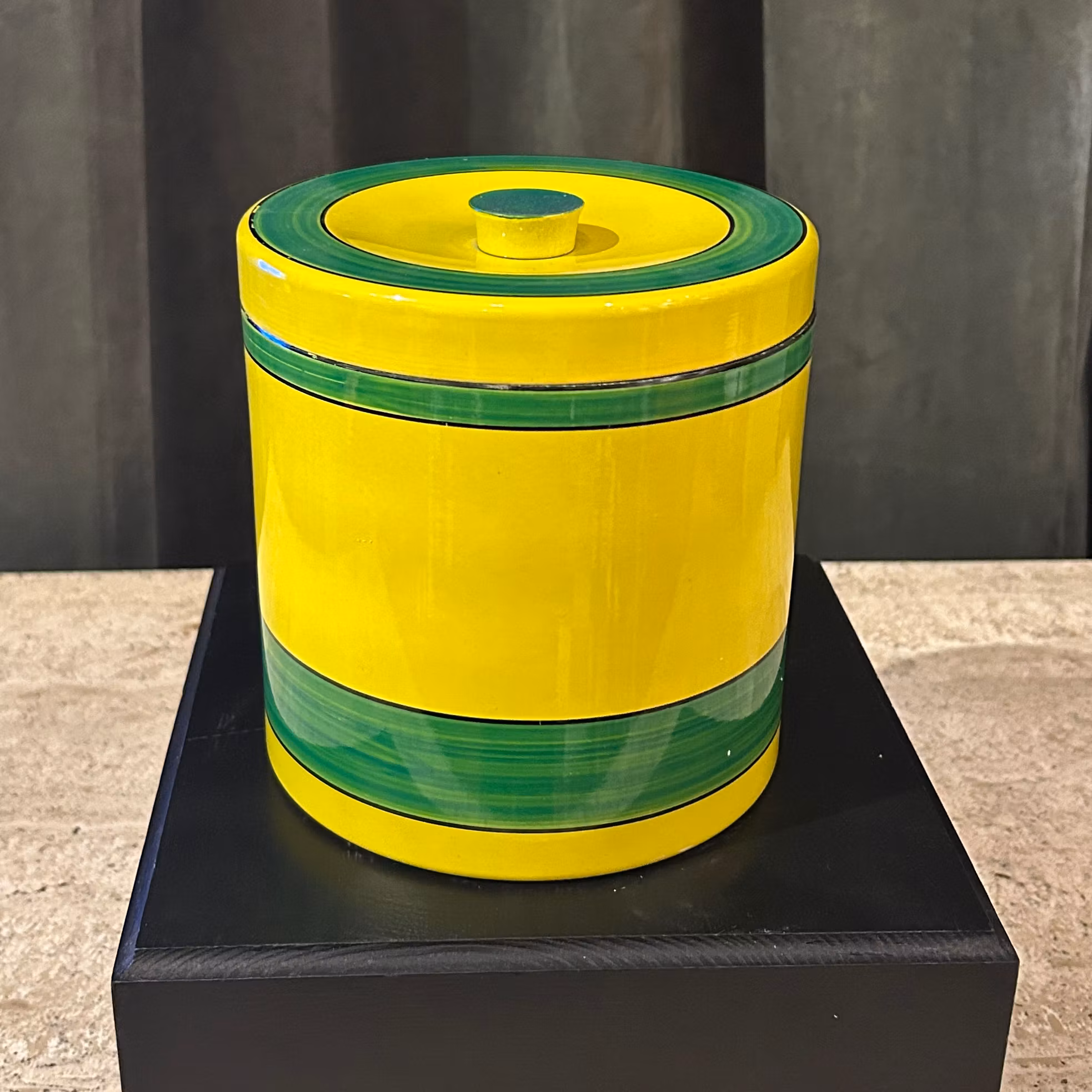 Burk med lock i hårdplast. 1 st grön och 1 st orange