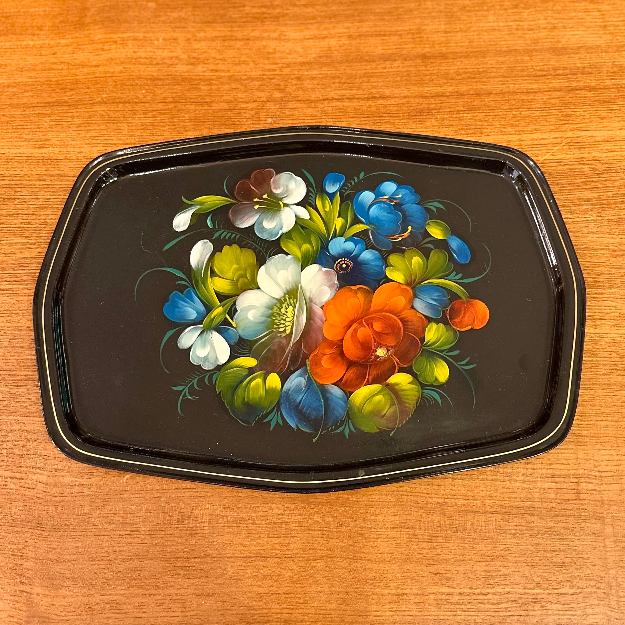 En vackert handmålad rysk bricka i plåt. Mått: 44x32 cm. Perfekt skick.