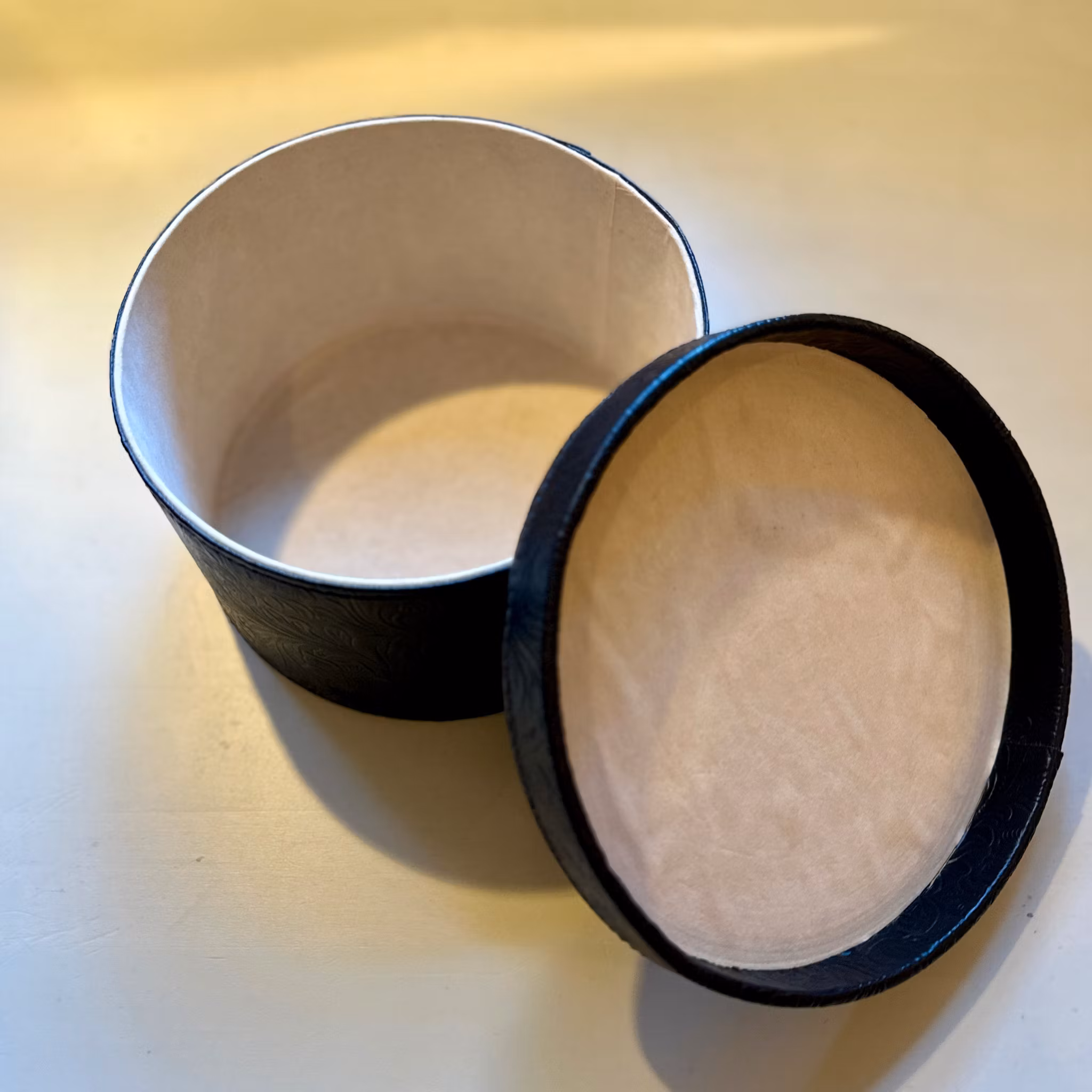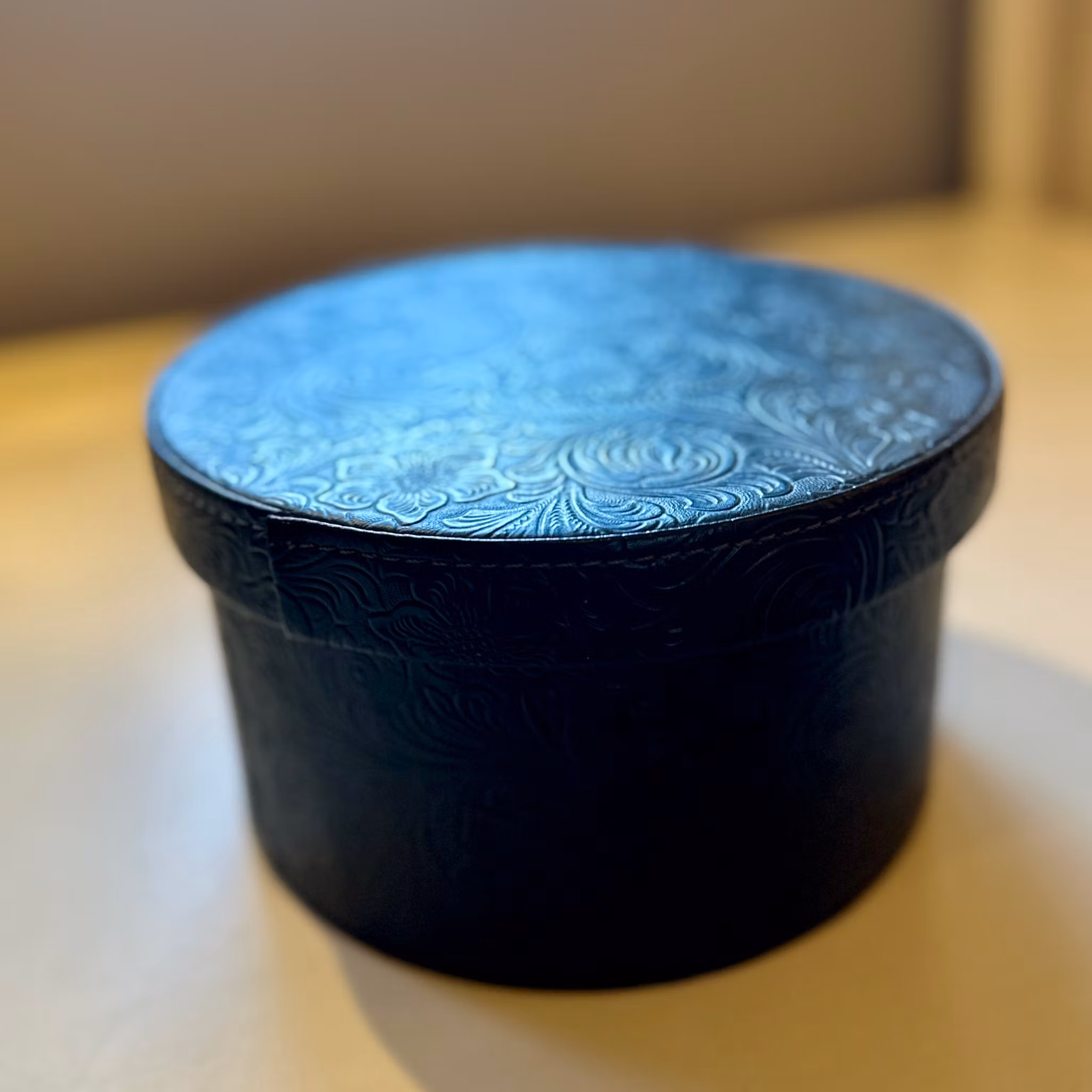 Elegant svart läderlåda. Perfekt för förvaring eller dekoration.