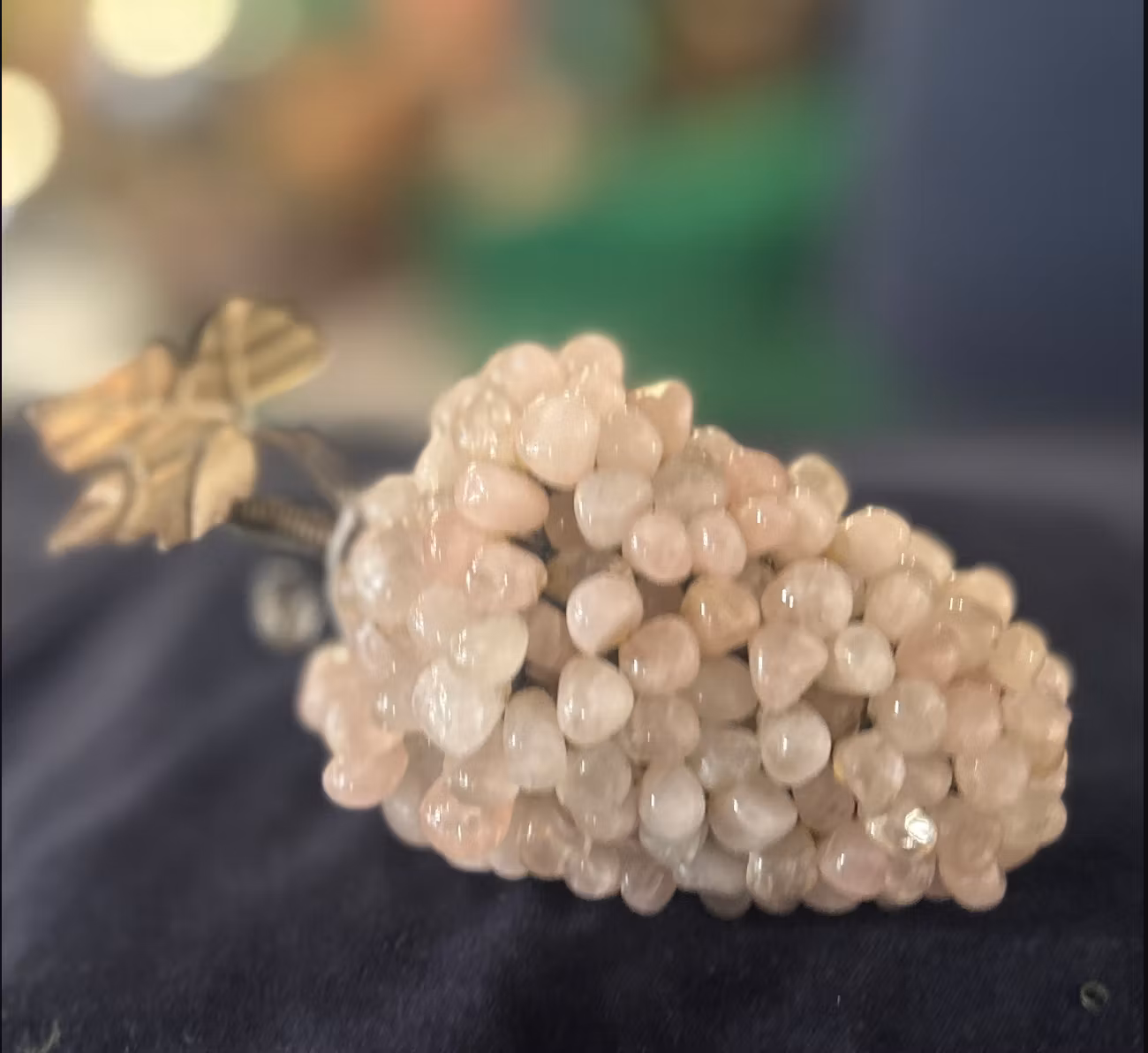 Bordsdekoration av druvor i glas ,sten och vitmetall i rosenkvarts. Ca 13 cm. Italien.