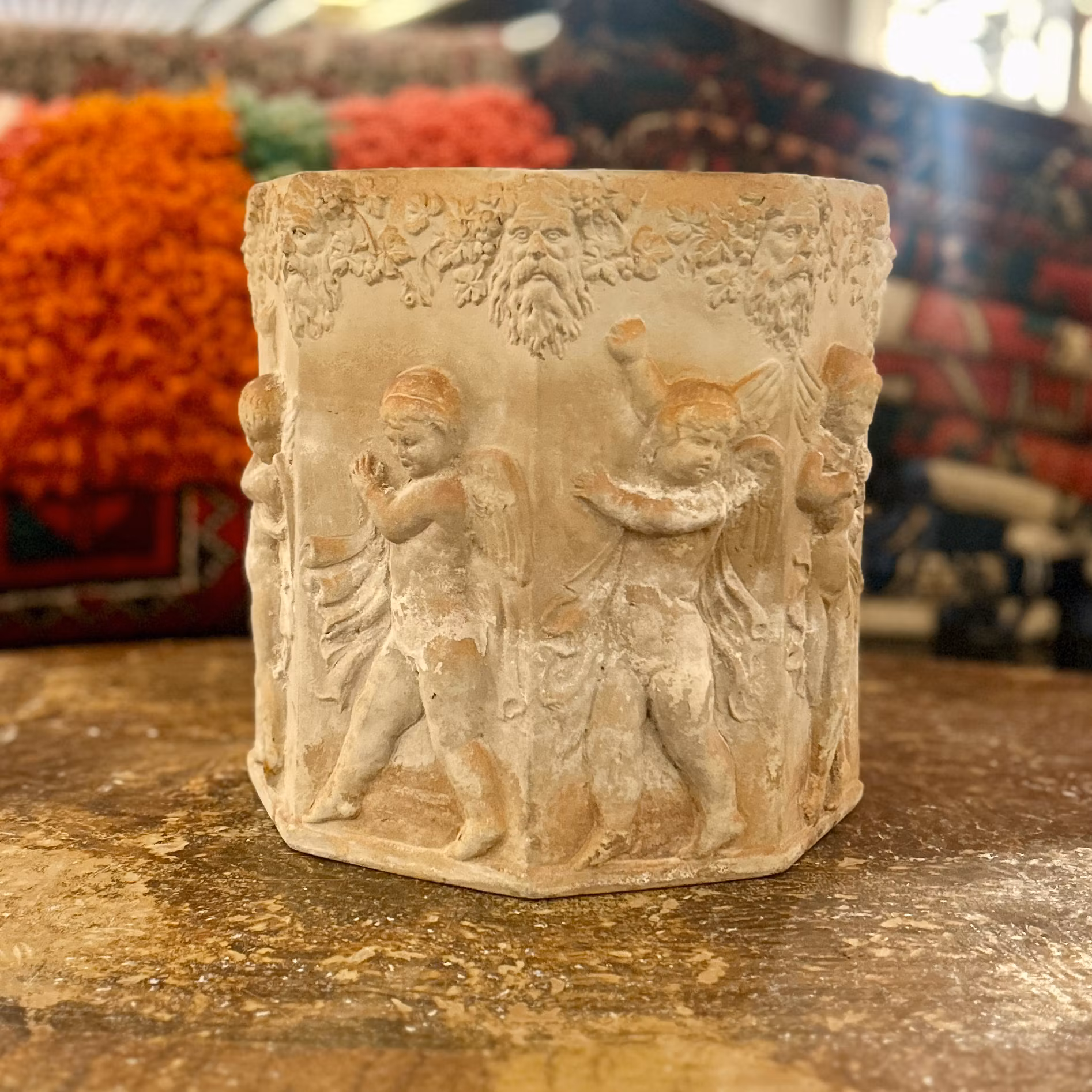 Ytterfoder relief i gips med patina . H 25