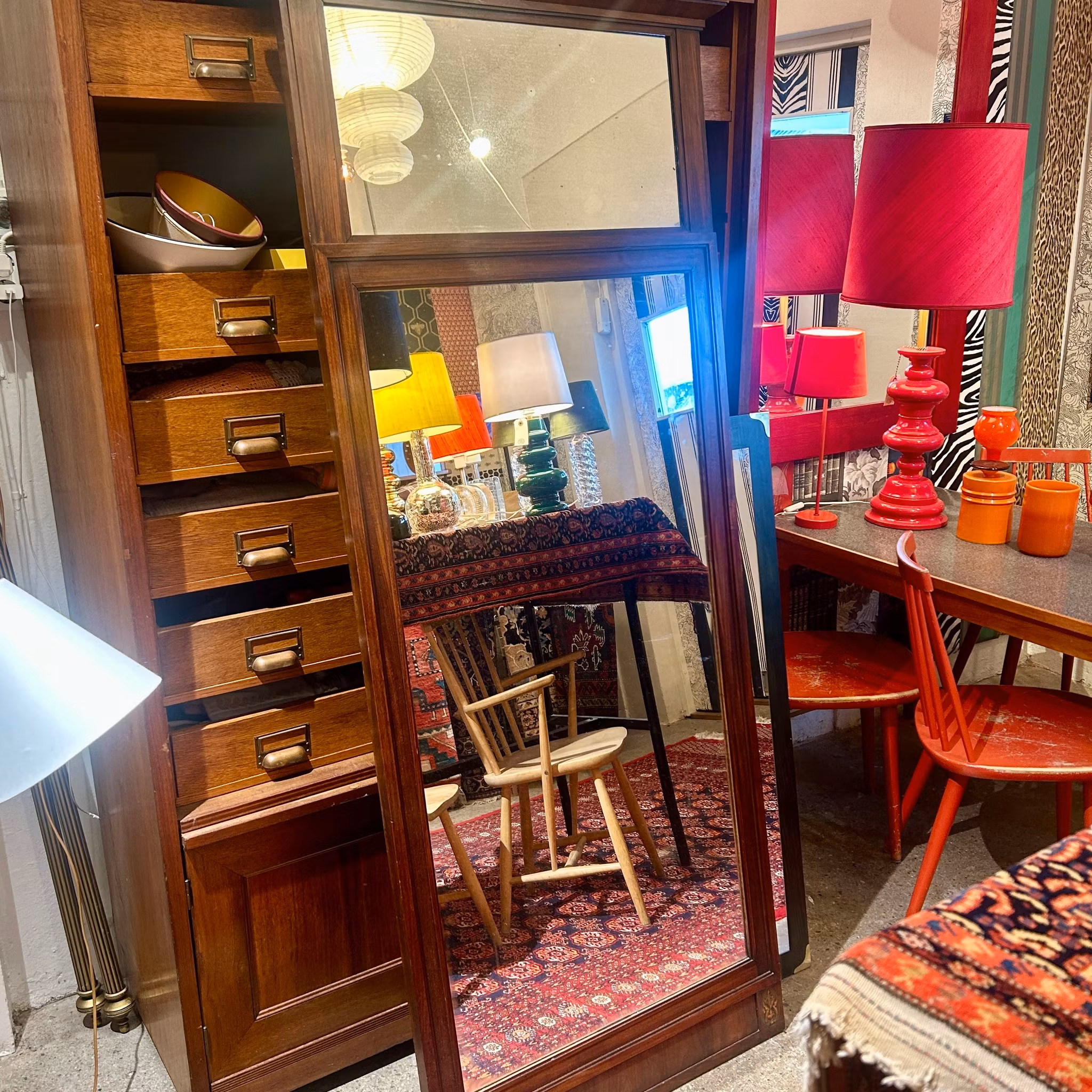 Mahognyspegel med intarsia från 1800-talet.Mått: 83x187 cm.