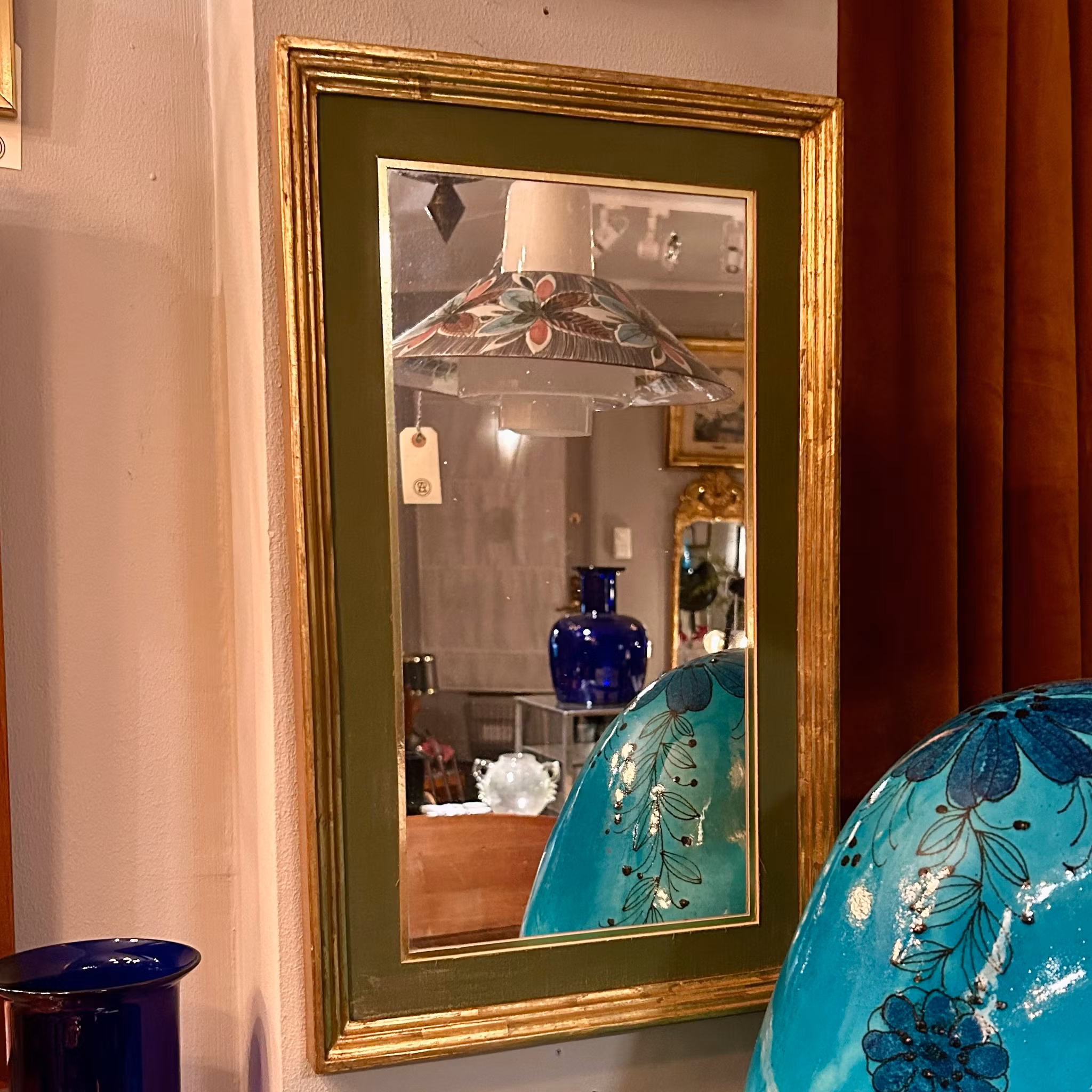 Spegel förgylld med grön textil. Troligen NK. 52x32